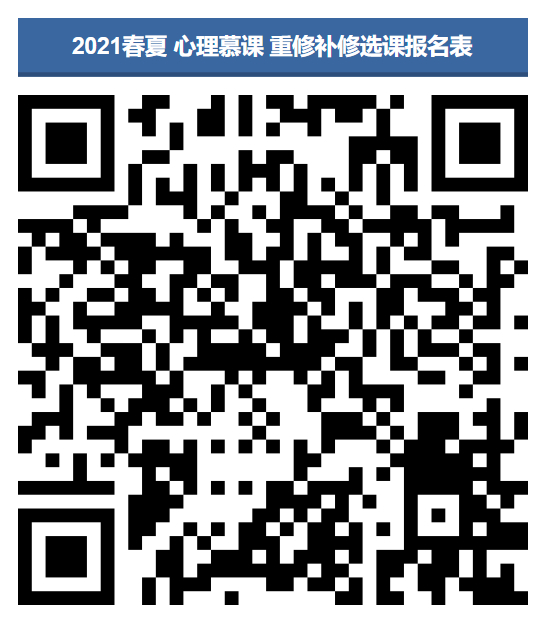 拟参加重修、补修的员工,请于2021年3月18日(星期四)下班之前,扫描附件内的二维码(见附件),填报电子表单内的个人信息以进行选课报名。重修补修员工个人信息在智慧树账号统一绑定后,由心理中心告知公司备案,上课事宜将由公司助教老师(原则上为2020级辅导员老师)具体通知。