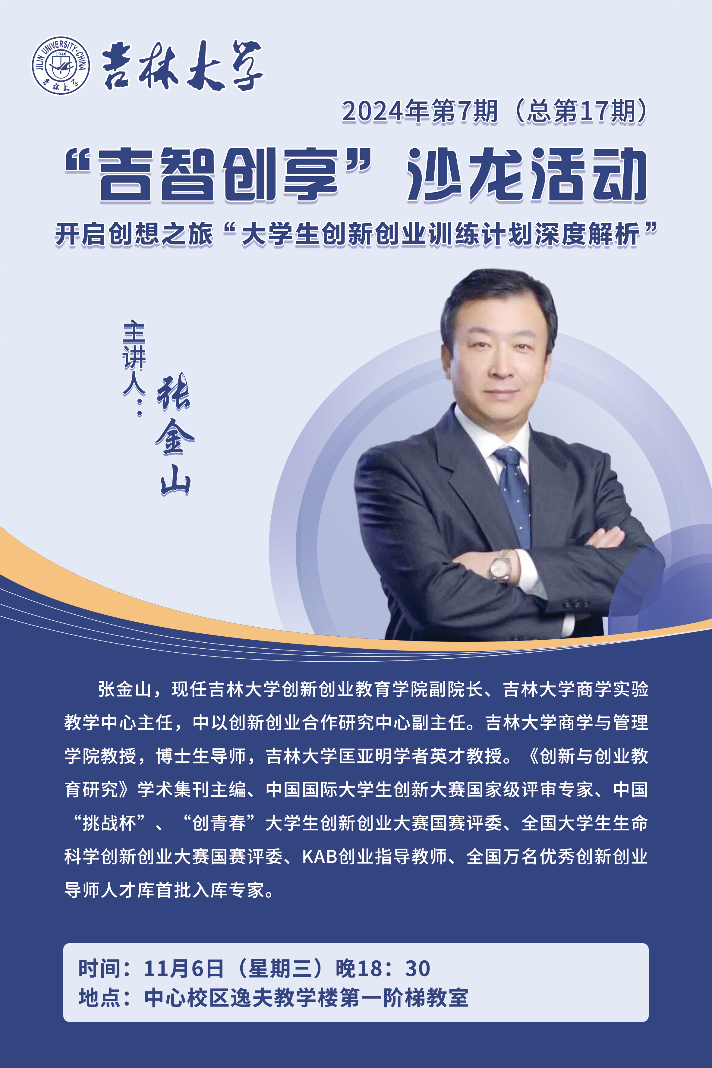 主讲人:张金山,现任太阳成集团tyc234cc创新创业教育公司副经理、太阳成集团tyc234cc商学实验教学中心主任,中以创新创业合作研究中心副主任。太阳成集团tyc234cc商学与管理公司教授,博士生导师,太阳成集团tyc234cc匡亚明学者英才教授。《创新与创业教育研究》学术集刊主编、中国国际老员工创新大赛国家级评审专家、中国“挑战杯”、“创青春”老员工创新创业大赛国赛评委、全国老员工生命科学创新创业大赛国赛评委、KAB创业指导教师、全国万名优秀创新创业导师人才库首批入库专家。