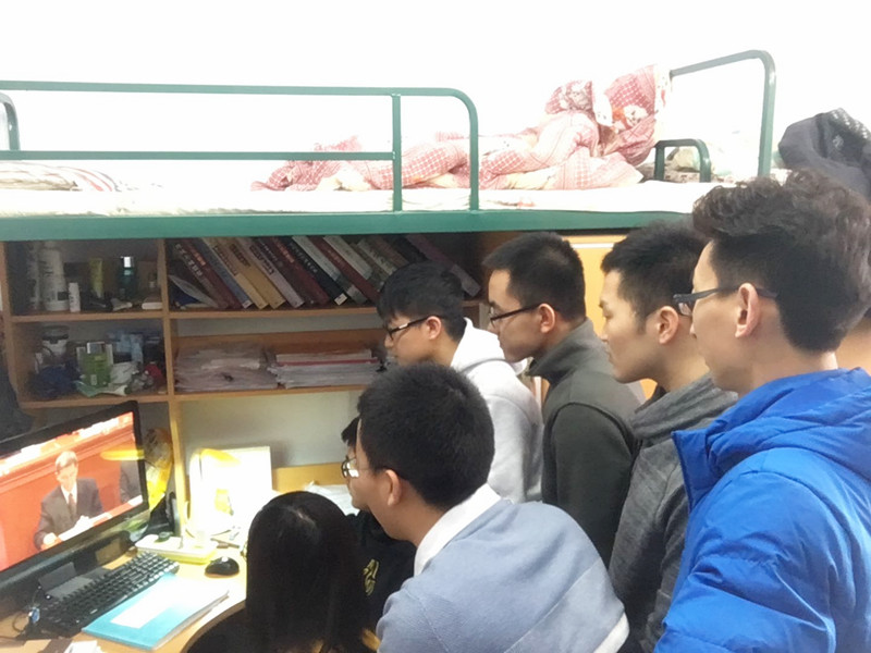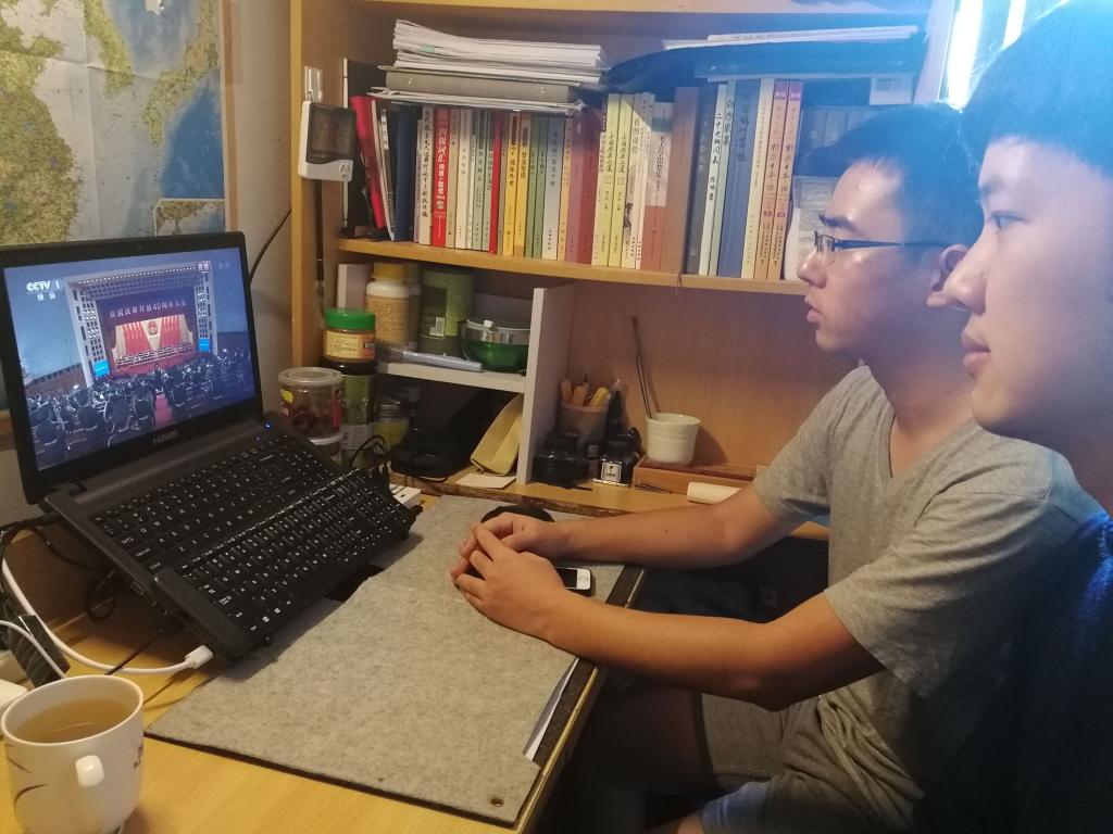 公司党委理论中心组成员、各支部书记、行政教工党员在匡亚明楼274会议室进行了集中收看。在校的员工党员和在长春的教师党员集中在寝室或者家里收看。在国外和国内外地交流、实习的老师和同学,也都积极自觉地或跨时区自学、或加入实习所在地的学习小组进行观看。