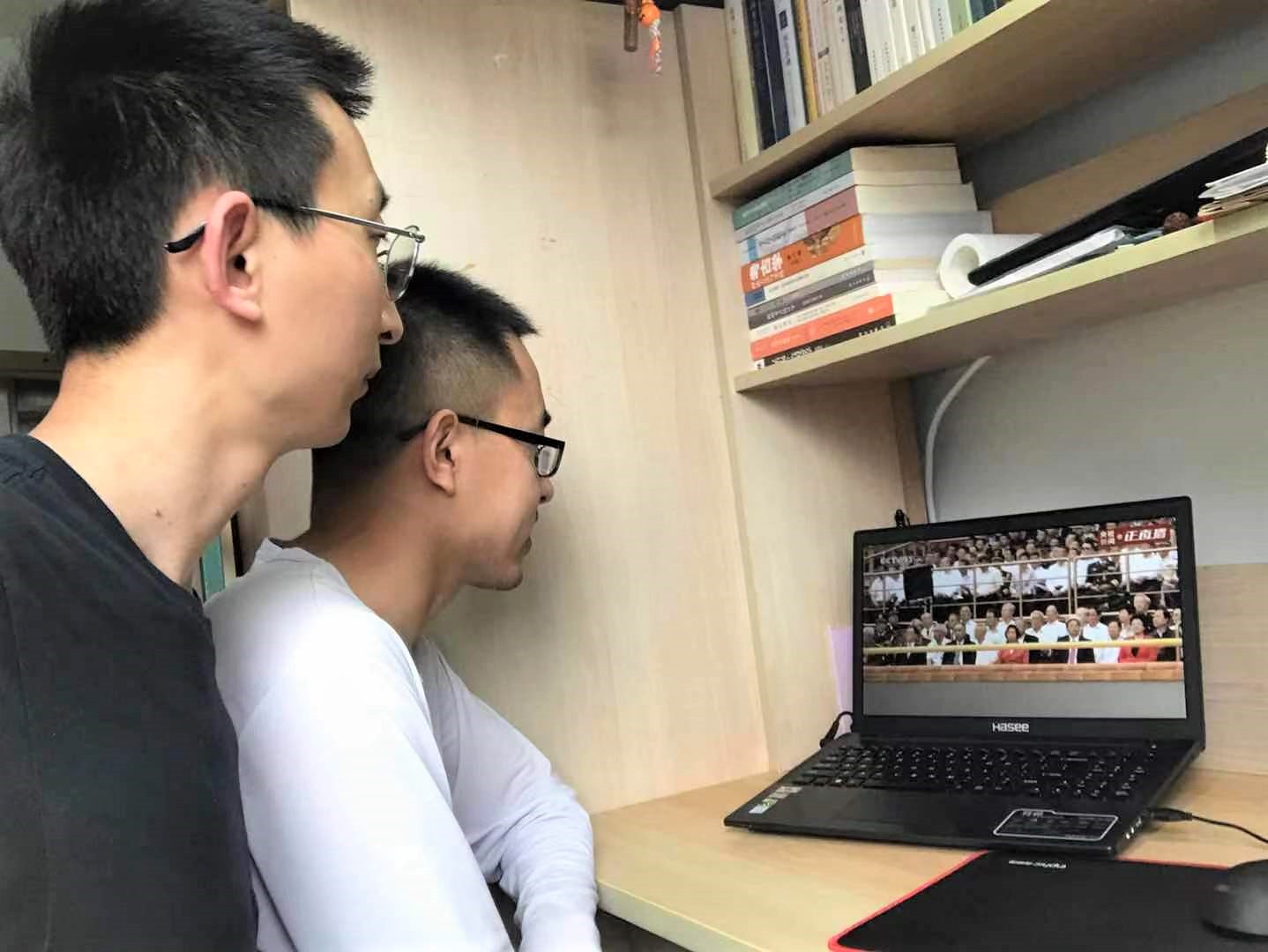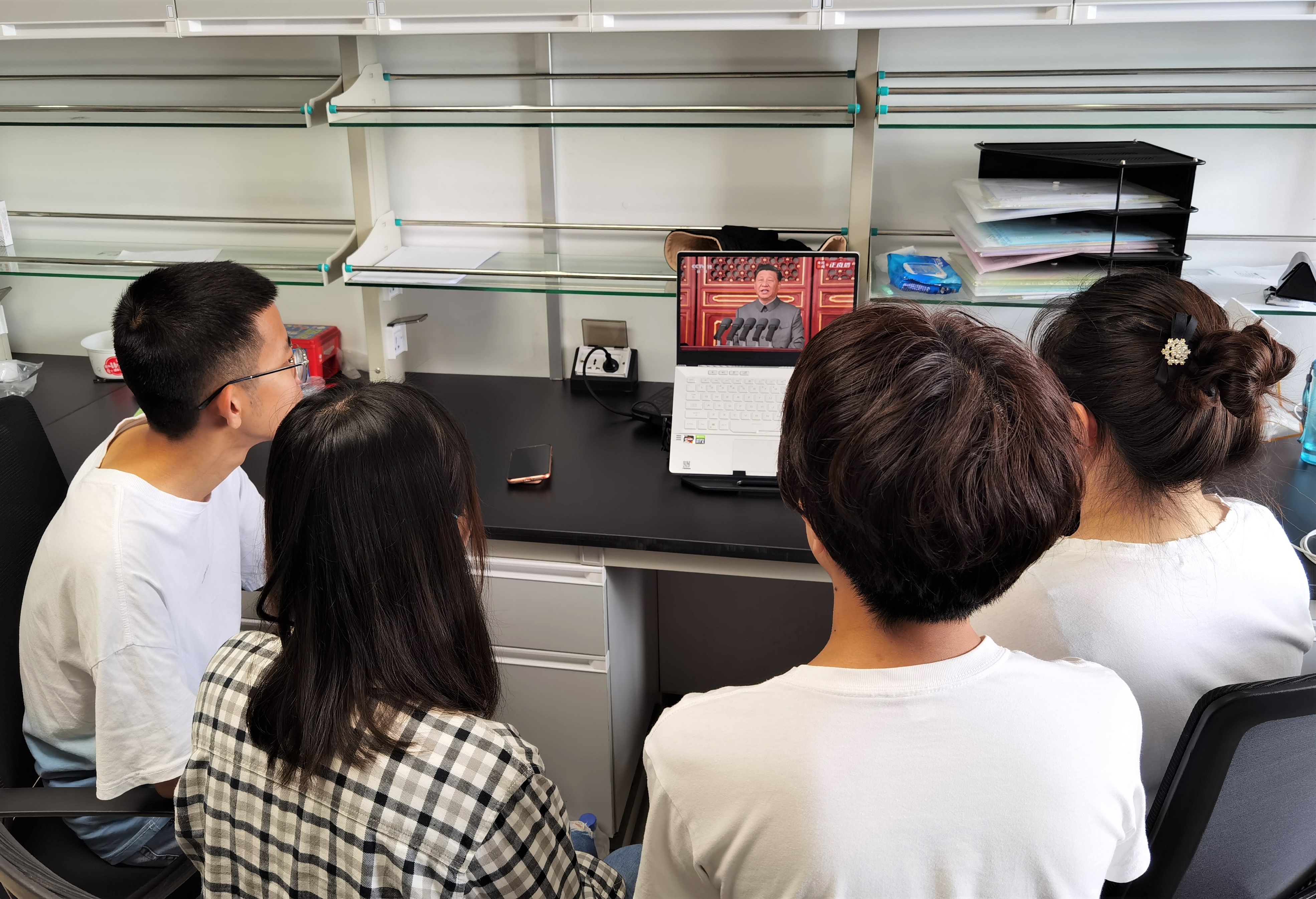 因受场地所限,考古公司党委将收看形式分为支部和小组两个部分。行政教工党支部和考古学及博物馆学教师党支部在公司会议室、考古与艺术博物馆教工党支部在博物馆会议室、本科生党支部在公司党团活动室进行了集中收看。其他党支部分解为党小组在寝室、教研室或办公室收看。