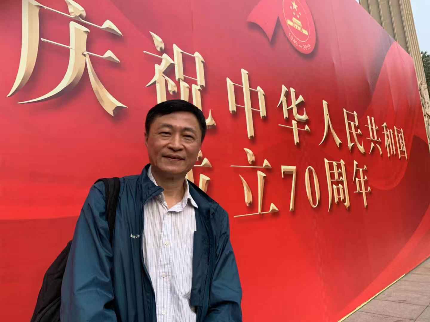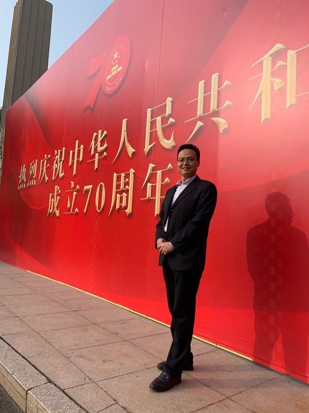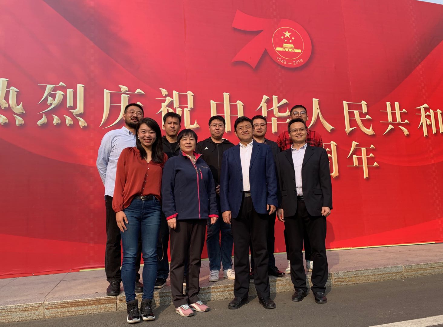 宣誓结束后,党员们纷纷在东校门的“热烈庆祝中华人民共和国成立70周年”宣传板前合影留念。