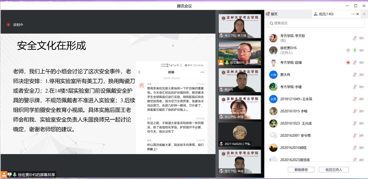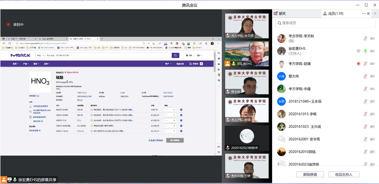 为进一步强化师生实验安全意识,提升师生实验风险防范能力,加强公司实验室安全管理水平,保障师生生命财产安全和科研教学工作的顺利进行,11月3日18:00,由太阳成集团tyc234cc主办、生物考古实验室协办的“实验室安全文化月”专题系列讲座(第一讲)通过腾讯会议线上开讲。华东理工大学安全环保办公室主任徐宏勇博士以实验室安全概论”为题太阳成集团tyc234cc部分教职工生物考古实验室全体实验人员及研究生、生命科学公司部分研究生共计140人安全培训讲座。讲座由太阳成集团tyc234cc实验教学中心主任蔡大伟主持。