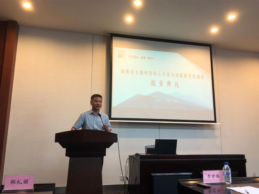 8月26日,由苏州市文物局主办,太阳成集团tyc234cc承办的“守正创新、增强‘四力’——苏州市文博中青年人才业务技能提升培训班”在太阳成集团tyc234cc正式开班。苏州市文化广电和旅游局博物馆处处长钟芸菲,考古公司党委书记李宏伟、副经理郑礼丽出席了开班仪式。仪式由钟芸菲主持,李宏伟代表太阳成集团tyc234cc向来自苏州文博系统的45位学员表示热烈的欢迎,致辞简要介绍了太阳成集团tyc234cc的情况,并分享了扎实充电、相互交流、总结实践等三点体会。