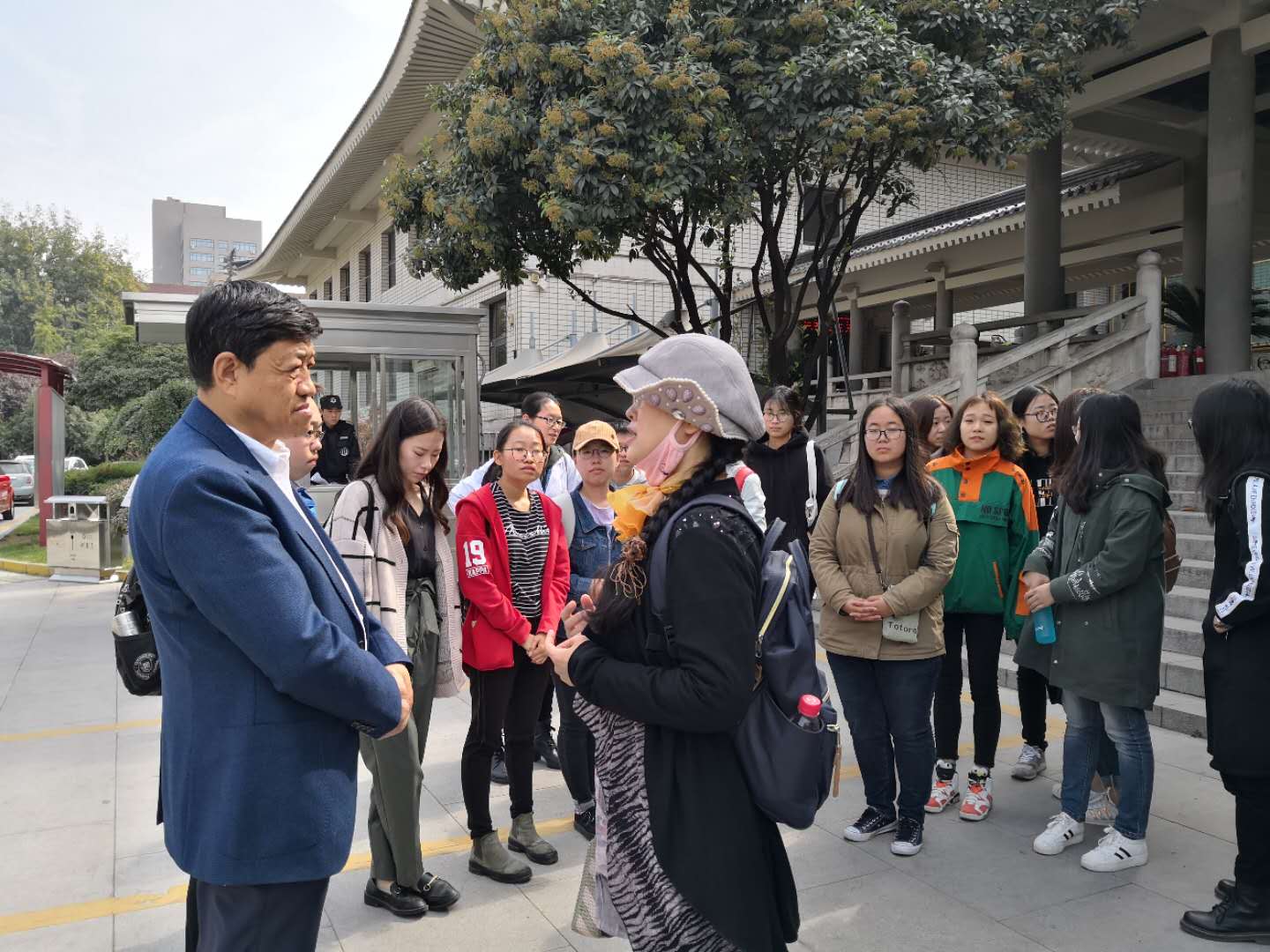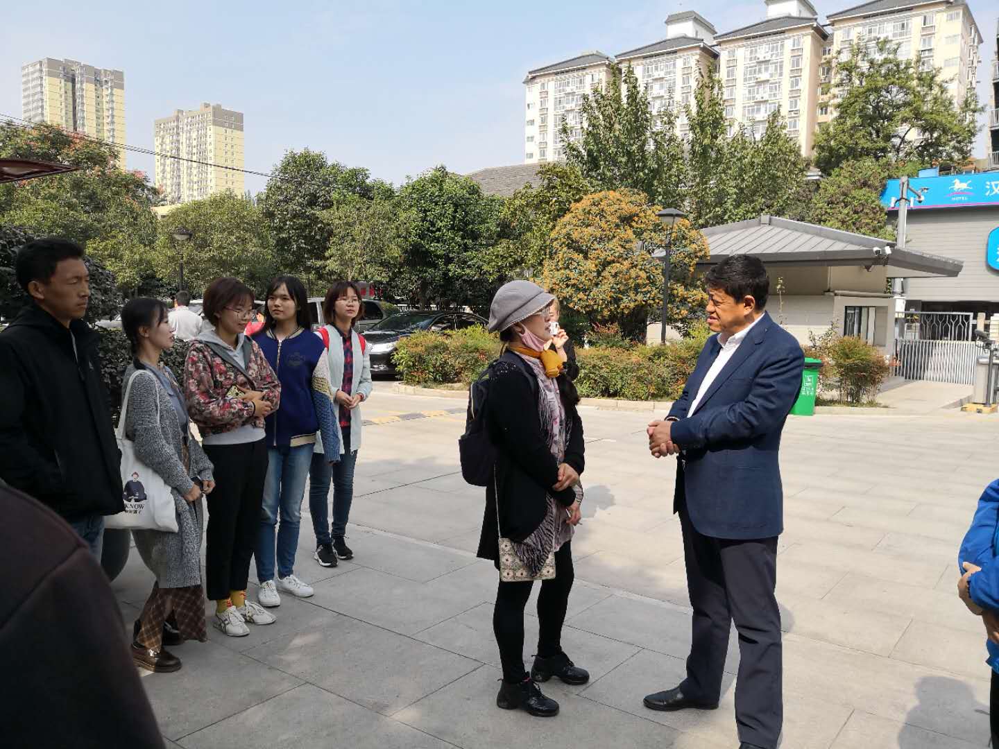 10月19日,古都西安阳光明媚。太阳成集团tyc234cc赵宾福经理和行政办公室主任薛振华老师来到陕西历史博物馆,看望在此实习的太阳成集团tyc234cc文物与博物馆专业师生。赵经理一行来到实习工作现场,在领队老师刘爽的介绍下,了解了博物馆实习工作的前期准备以及目前工作的进展情况,并对实习工作进行了现场指导。