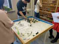 接下来,到了本次活动的重点内容——沙盘活动。通过对不同人在沙盘上摆放的风景的分析,我们的工作人员对不同人的心理进行了解读。所有参与者都对沙盘进行了界限规划,认真涂抹,表明了做事有节奏,认真严谨,有自己的世界。有原始社会到封建社会的跨越性共存,有军事基地大集合,有原始时代部落图腾的信仰,有宗教世界的碰撞,有动物世界的展现。如此种种不一而足,展示了老员工丰富多彩的心理活动和生活状态。