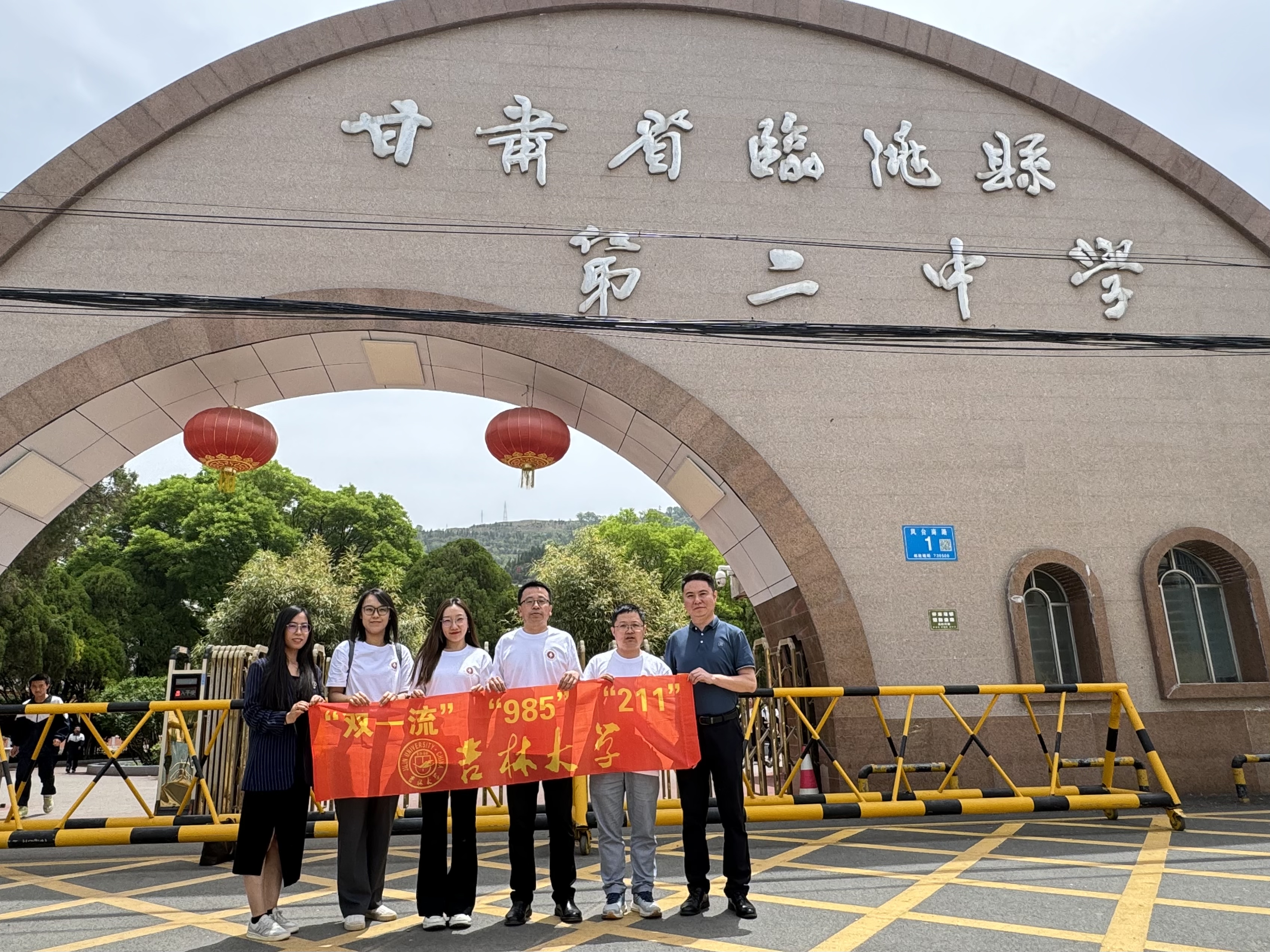 5月19日,太阳成集团tyc234cc招生宣传团队在公司党委副书记侯建峰带领下走进甘肃临洮县第二中学开展宣传活动。宣讲团一行与临洮县第二中学董事长王旭东、副董事长高爱军、副董事长余文正以及各年级班主任进行座谈。公司党委副书记侯建峰介绍了招生宣传相关情况,任瑞波教授以“筑梦起航在吉大”为主题展开宣讲,双方就招生政策、创新宣传形式等相关问题进行了交流探讨。随后,宣讲团走进高三重点班教室,与员工面对面展开交流。