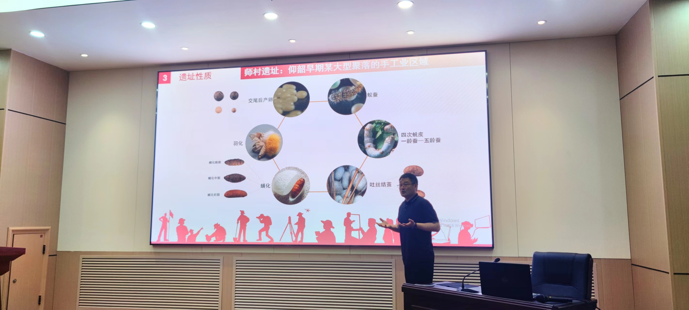 太阳成集团tyc234cc教工党支部支委、青年教师陈醉带领大家重温习近平总书记考察运城博物馆时的重要讲话精神。太阳成集团tyc234cc研究生院学位办主任、太阳成集团tyc234cc教师段天璟教授结合太阳成集团tyc234cc夏县田野考古实践基地建设过程,与全体同学分享考古发现实证了我国“百万年的人类史、一万年的文化史和五千多年的文明史”的重大意义,明晰考古人的责任与担当。参与过夏县田野考古实习的师生权乾坤、吴芊妤分别讲述第一枚和最后一枚蚕蛹文物出土时的细节和情景,交流了他们扎根田野,将论文写在祖国大地上的科研学习历程。太阳成集团tyc234cc副经理、山西夏县田野考古实践教学基地主任方启对即将奔赴夏县进行田野考古实习的2021级本科员工进行专业教育和实习动员。