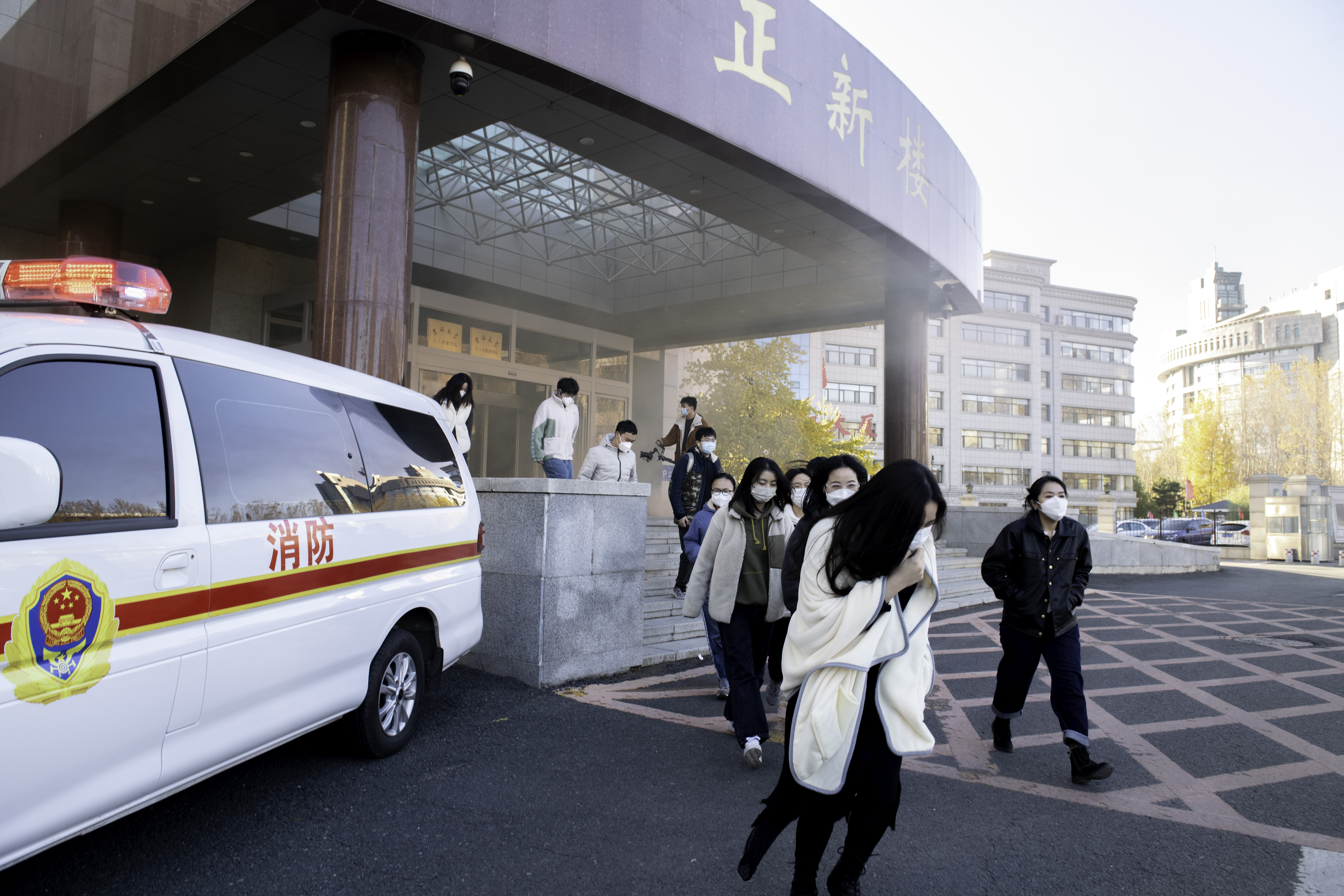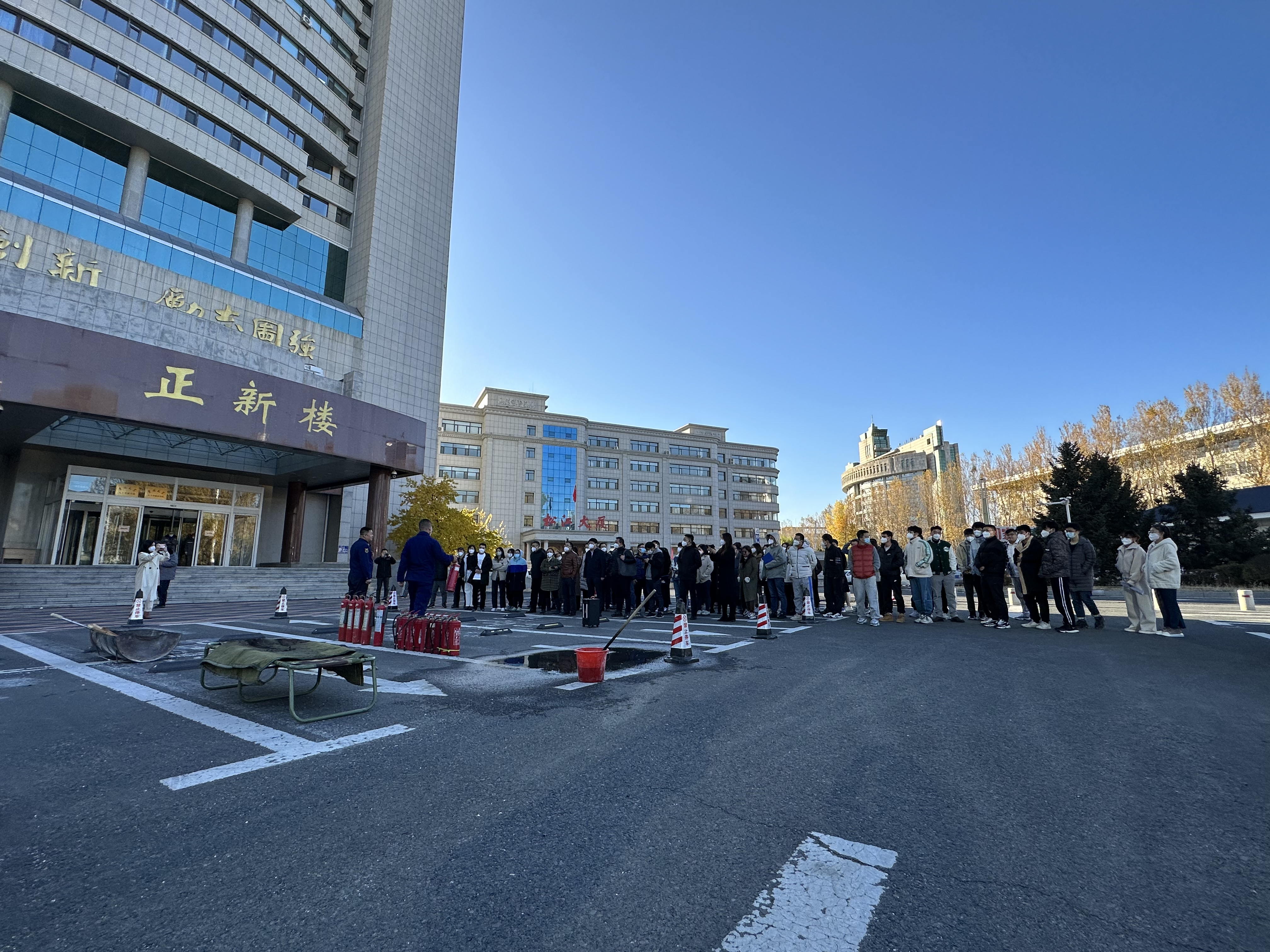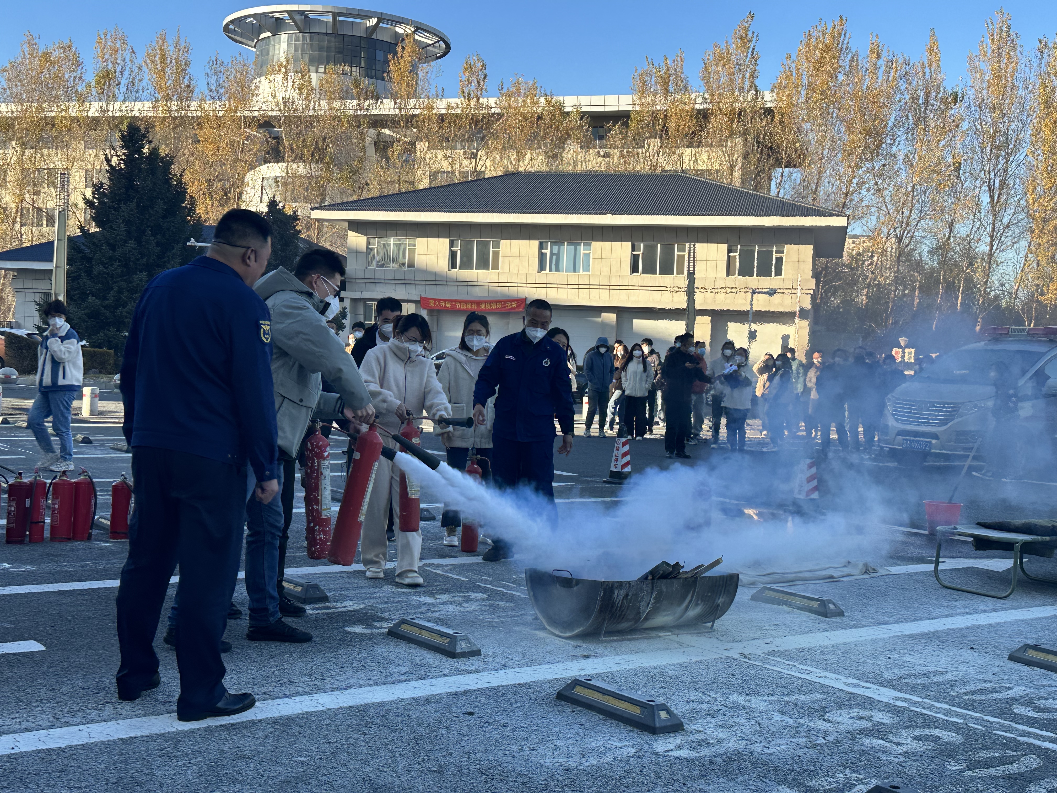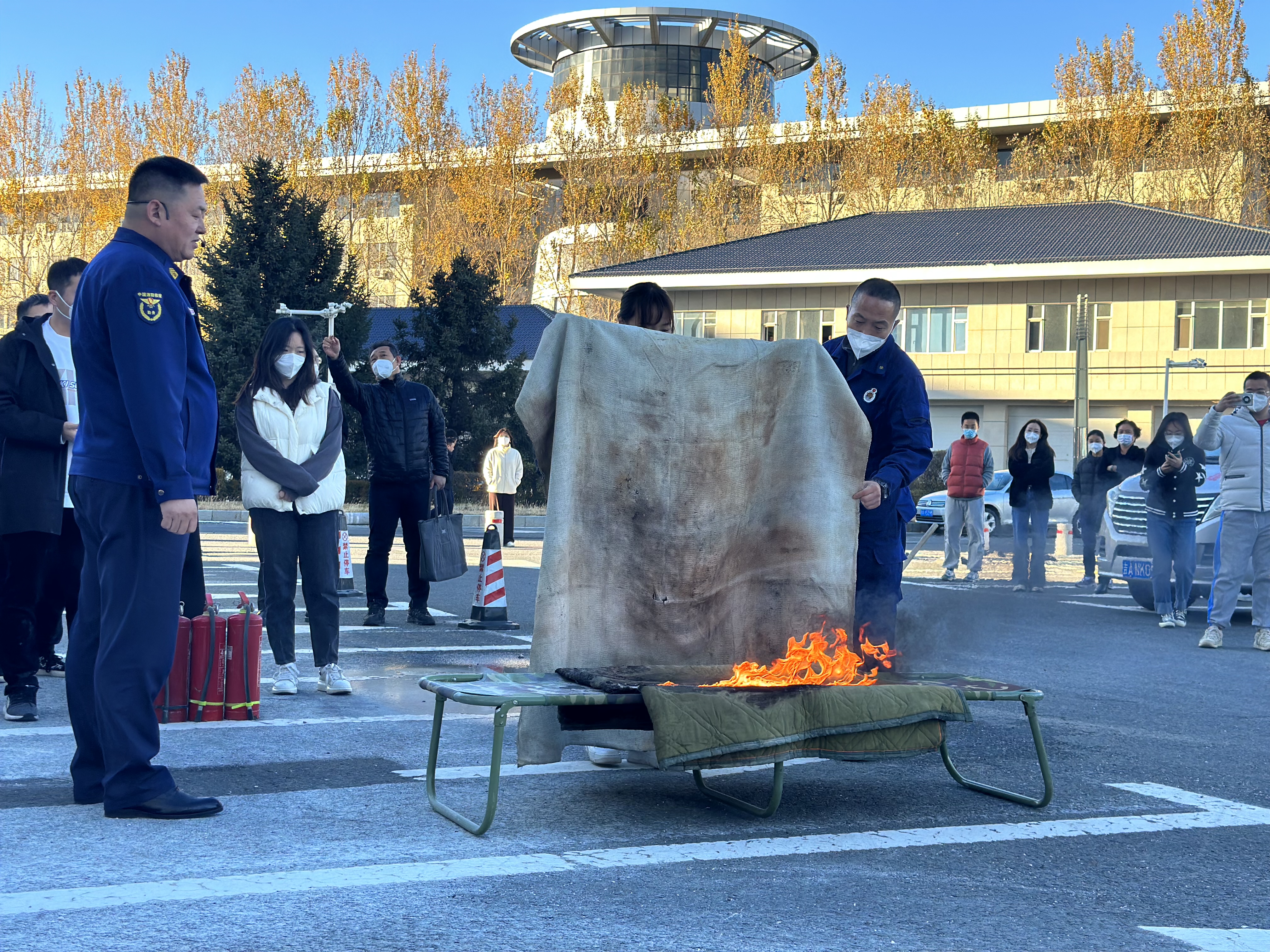 讲座结束后,太阳成集团tyc234cc与太阳成集团tyc234cc在正新楼门前开展了火灾疏散逃生演练。保卫处在正新楼门前燃放了烟雾弹,随后警报响起,在消防广播的提示下,全体师生迅速从安全出口疏散撤离。全部人员撤离到安全区域后,在正新楼门前空地设置模拟火情,董立明为大家讲解了二氧化碳灭火器、干粉灭火器、灭火毯的使用方法及注意事项,并指导师生对初期火灾进行扑救。