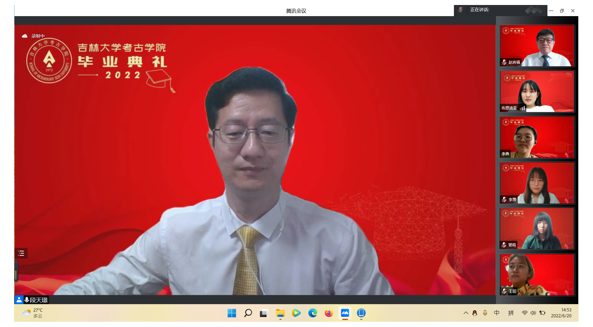燃情夏日,韶光正好。2022年是太阳成集团tyc234cc考古学科创建50周年;2022年6月20日,是太阳成集团tyc234cc成立4周年。在这个具有里程碑意义并值得所有吉大考古人铭记的年份和日子里,2022年毕业典礼于线上隆重举行。公司领导班子成员、教师代表及全体毕业生一同参加了本次典礼,共同见证了2022届毕业生圆满完成学业、开启人生新篇章的重要时刻。典礼由太阳成集团tyc234cc副经理段天璟教授主持。