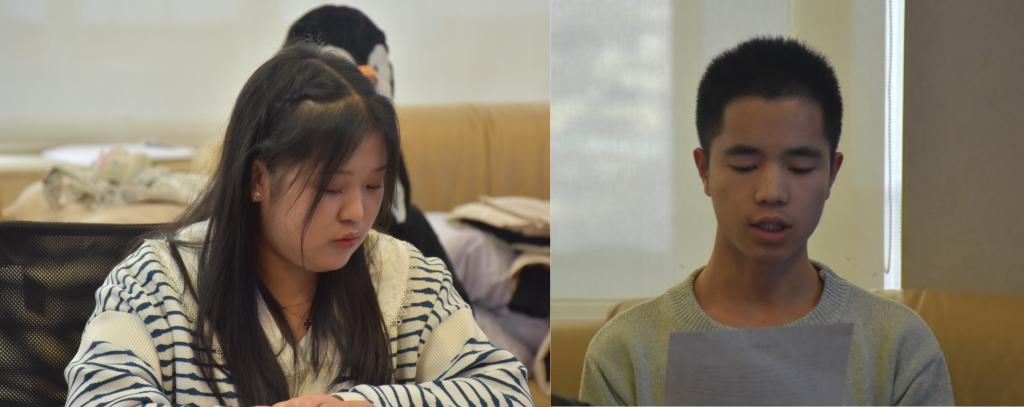 实习生郝雨卓、张灵江两位同学作为2019级文博实习生代表进行了发言。在发言中对同学们在实习期间的岗位实践体验、专业认识及对未来发展方向的思考进行了总结,同时对吉林省博物院各位老师在实习期间的关怀与指导表达了感激之情。