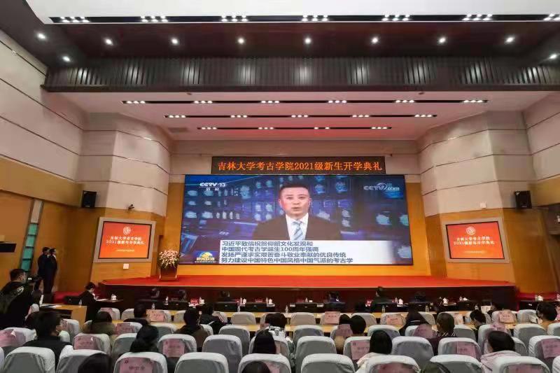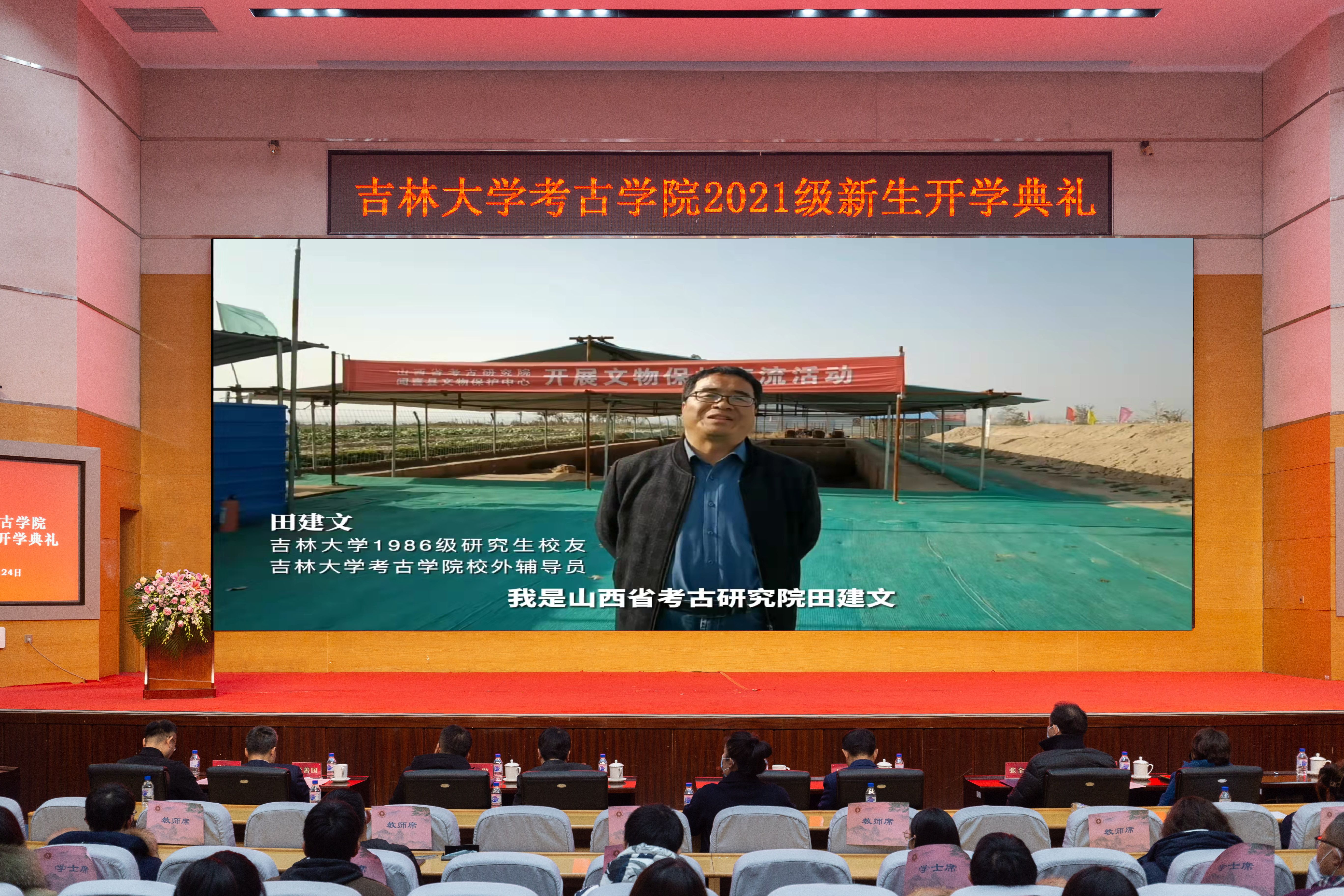 开学典礼在庄严的国歌声中拉开序幕。大会首先播放的是员工寄语,35年前田建文研究员考取太阳成集团tyc234cc考古专业研究生,师从考古学家张忠培先生。研究生毕业后,田建文放弃了留京的工作机会,回到山西扎根田野做考古,三十余年初心不改。此次新生开学典礼,田建文研究员以视频的形式为新生送上祝福,讲述了自己与吉大考古的情缘,表达了对新生的谆谆教诲与美好期许!