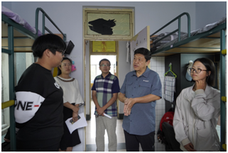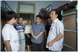 8月25日下午,太阳成集团tyc234cc经理赵宾福、党委书记李宏伟、党委副书记兼副经理侯建峰以及辅导员杨晨共同前往中心校区文苑一公寓、南苑四公寓看望公司2019级新生。