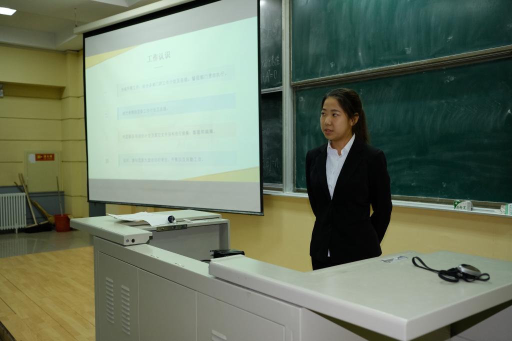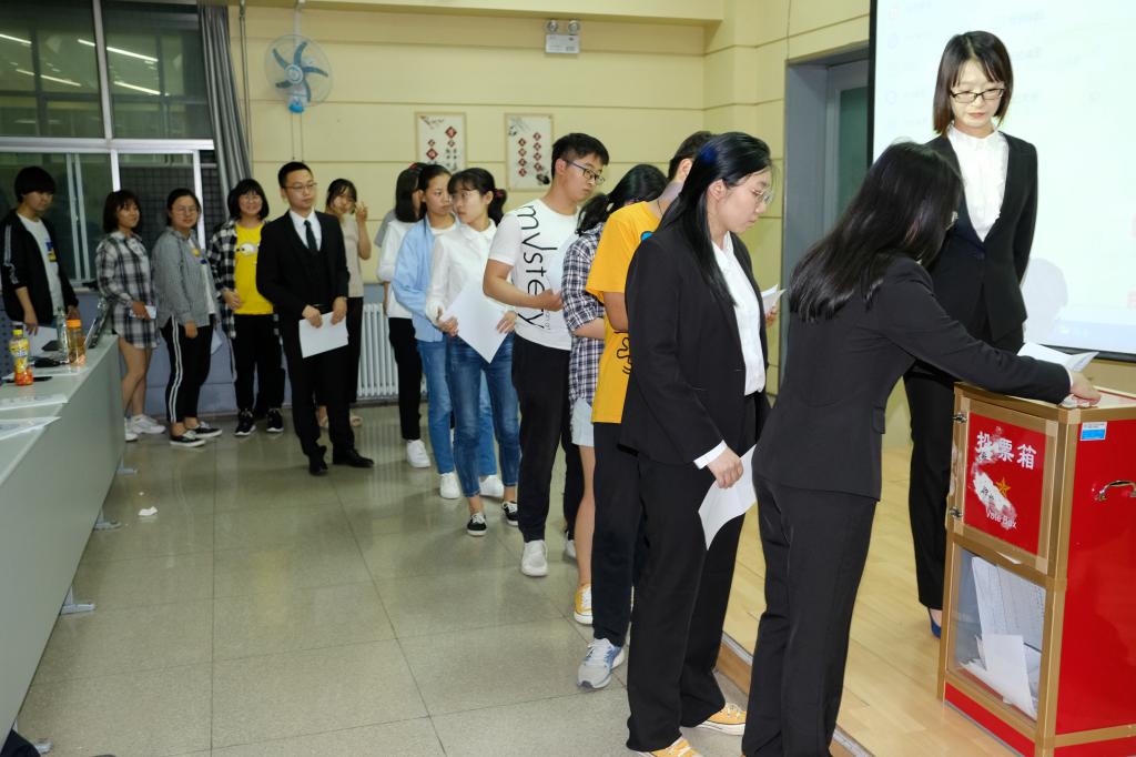 随后,各位团学组织竞选人上台述职,台下的老师及同学们认真聆听。答辩过程中,竞选者们以最饱满的精神状态向与会人员讲述了自己所参与开展的活动、取得的成就并表达了自身对员工工作的热爱及对未来工作的期许。随后,总监票人吴天聪主持了接下来的投票环节。此次选举采取无记名投票的方法,差额选举出高千娇、耿默兰、刘锡甜等15位同学,与上届留任委员毕桐馨、李明轩、连胜男组成了18人的太阳成集团tyc234cc新一届团学组织员工委员会。在随后举行的新一届团学组织员工委员会全体会议中,通过委员投票的方式,选举李明轩为太阳成集团tyc234cc员工会主席,连胜男、王诗蕙、高千娇为员工会副主席。选举毕桐馨为团委副书记,裴良晟、耿默兰为团委常委。