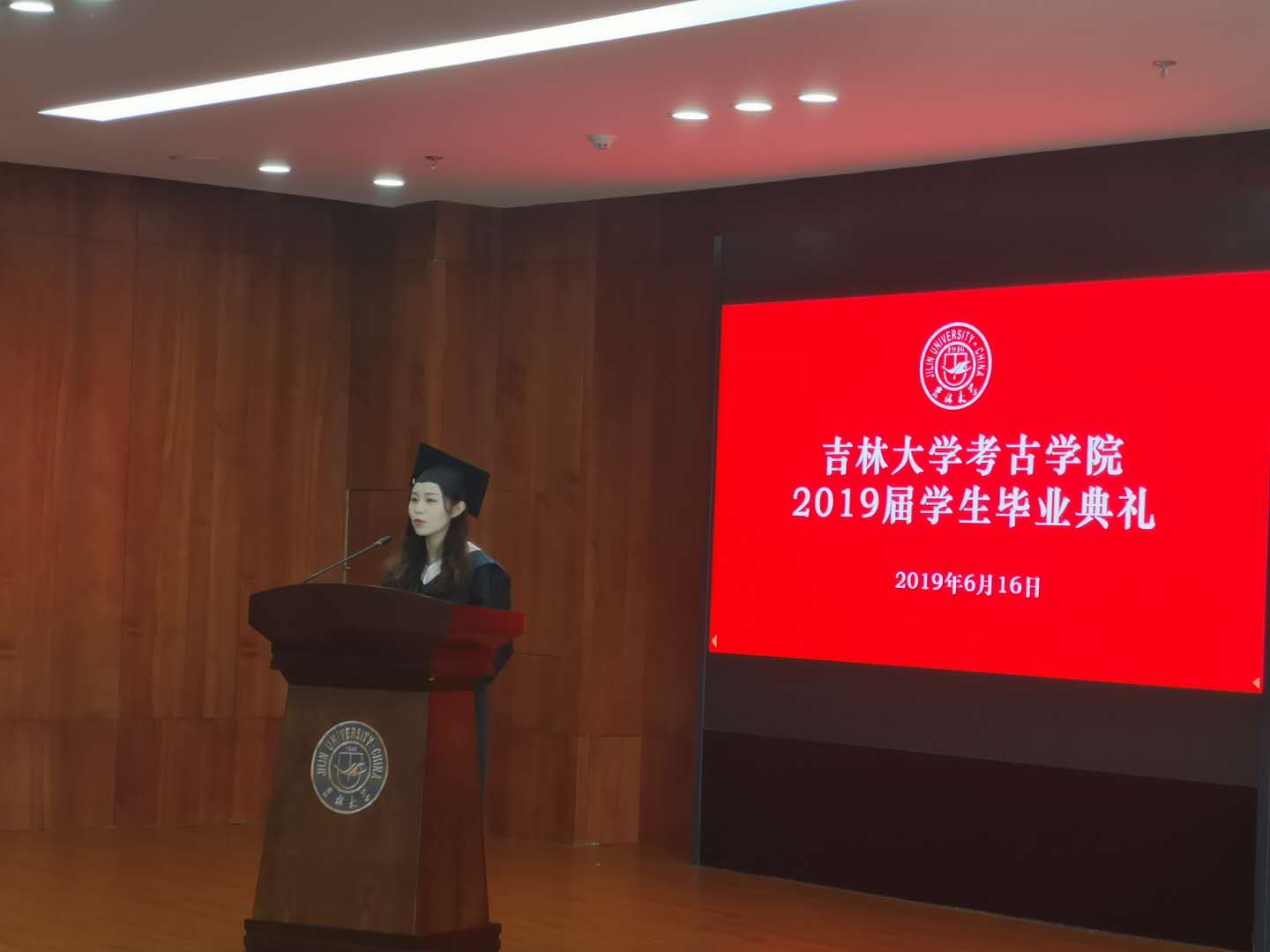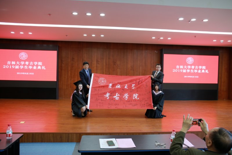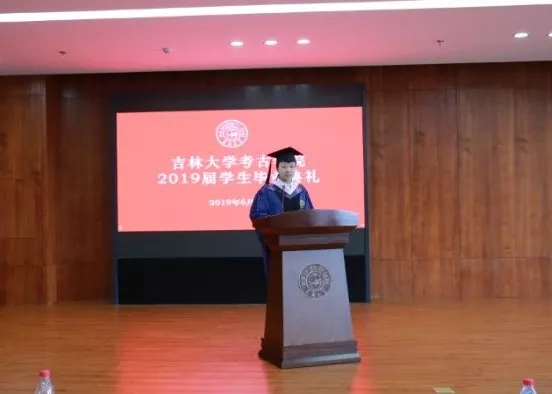 2015级考古班李萌同学作为本科毕业生代表发言,她在感恩母校的同时以时间为轴,结合自身经历,用细腻温柔的语言回忆了4年美好校园生活的点滴;2019年度“十佳研究生”获得者张力月同学代表研究生感谢公司老师的悉心教导,介绍了自己报效祖国,支边西部基层的感人经历,并针对学科特点和全体毕业生分享了在实践中不断积累经验的心得体会。