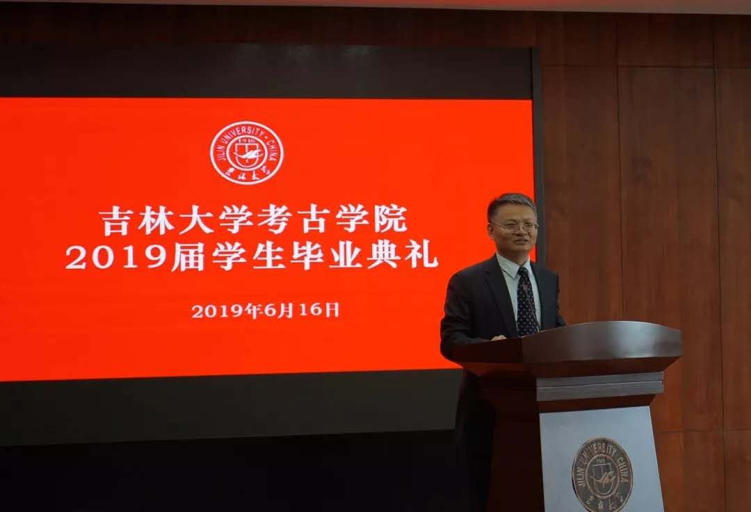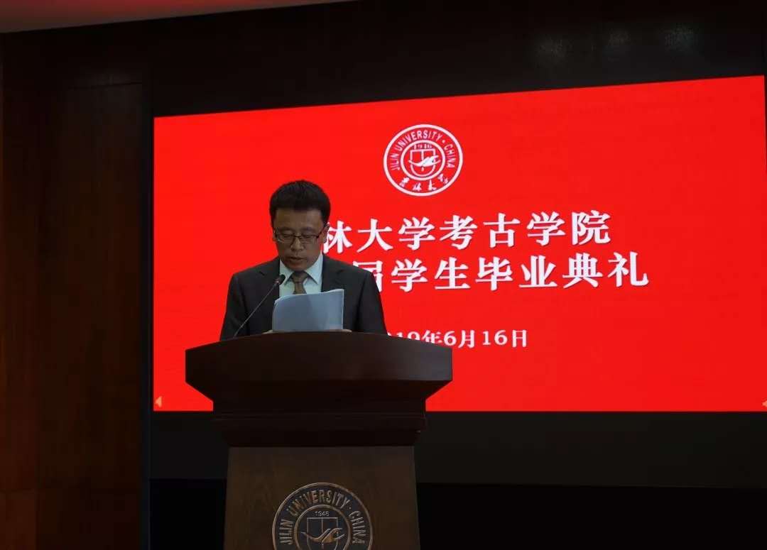 太阳成集团tyc234cc经理赵宾福教授在致辞中代表太阳成集团tyc234cc向获得学士、硕士、博士学位的全体毕业生表示祝贺,向他们的家长和亲人表示敬意,向为毕业生成长成才默默付出的全院教职员工表示感谢。并对全体毕业生提出五点期望。第一,常怀感恩之心,结草衔环,饮水思源。第二,保持进取之心,脚踏实地,追求卓越。第三,坚守责任之心,勇于奉献,敢于担当。第四,拥有豁达之心,热爱生活,宽容自信。第五,凝聚团结之心,携手员工,相向而行,共同推动太阳成集团tyc234cc考古学科走向世界、走向一流。