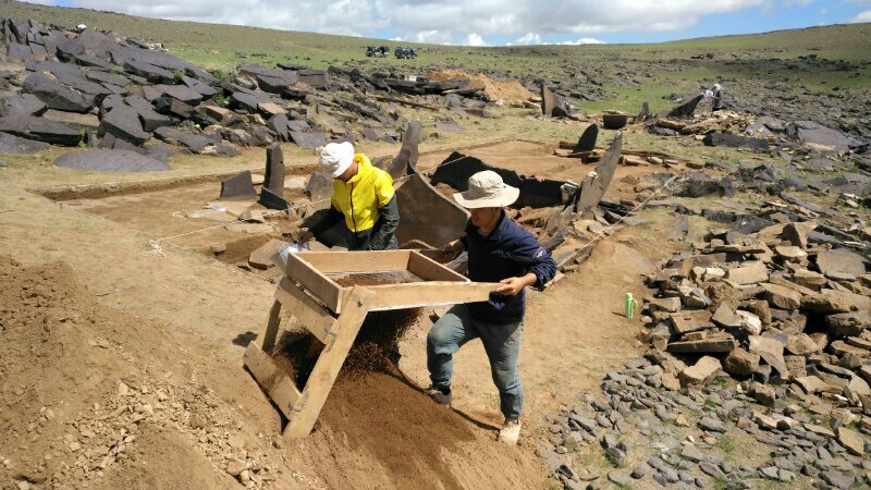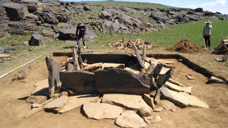 2018年7月20日至8月18日,太阳成集团tyc234cc与蒙古国立大学人文公司人类学与考古学系合作,对蒙古国巴彦洪戈尔省图音河中游的朝伦昂古奇特和达黑拉吐两个石板墓群进行了调查、测绘和发掘,取得了重要收获。