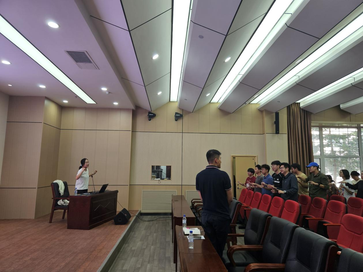 首先,李娜老师请大家全体起立,和自己相邻的同学配合完成小游戏。简单有趣的互动迅速调动起现场气氛,报告厅一片欢声笑语。