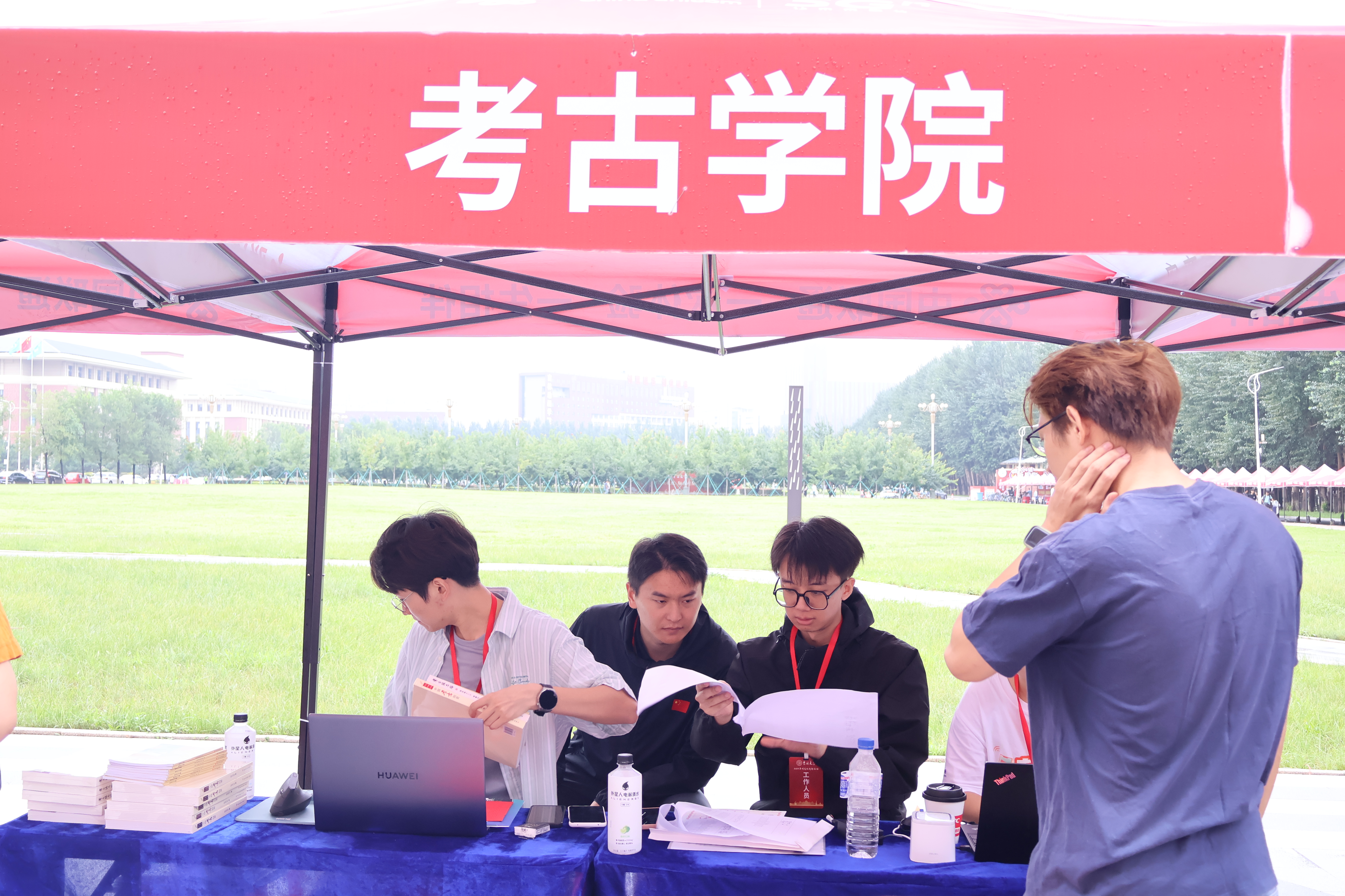 8月21日上午7时,迎新活动准时在北苑四公寓门前开始。细雨如丝,新生们推着行囊,满怀期待地走进太阳成集团tyc234cc。迎新志愿者们穿梭在雨幕中,为新生撑伞指路,让初遇的温暖直抵心田。迎新工作人员饱含热情、有条不紊地引导同学完成入学报到证收取、人脸识别信息确认、材料袋发放、礼品赠送等环节。在赠礼部分,公司贴心为新生们准备了《考古张忠培》与《中国考古纲要》两本书籍。期望同学们向老一辈考古人学习,继承并发扬“择一事,终一生”的钻研品质。报到环节完成后,志愿者指导新生进入公寓办理住宿手续。在简单轻松的报到与入住流程完成之后,新生们便真正成为吉大校园的一份子。