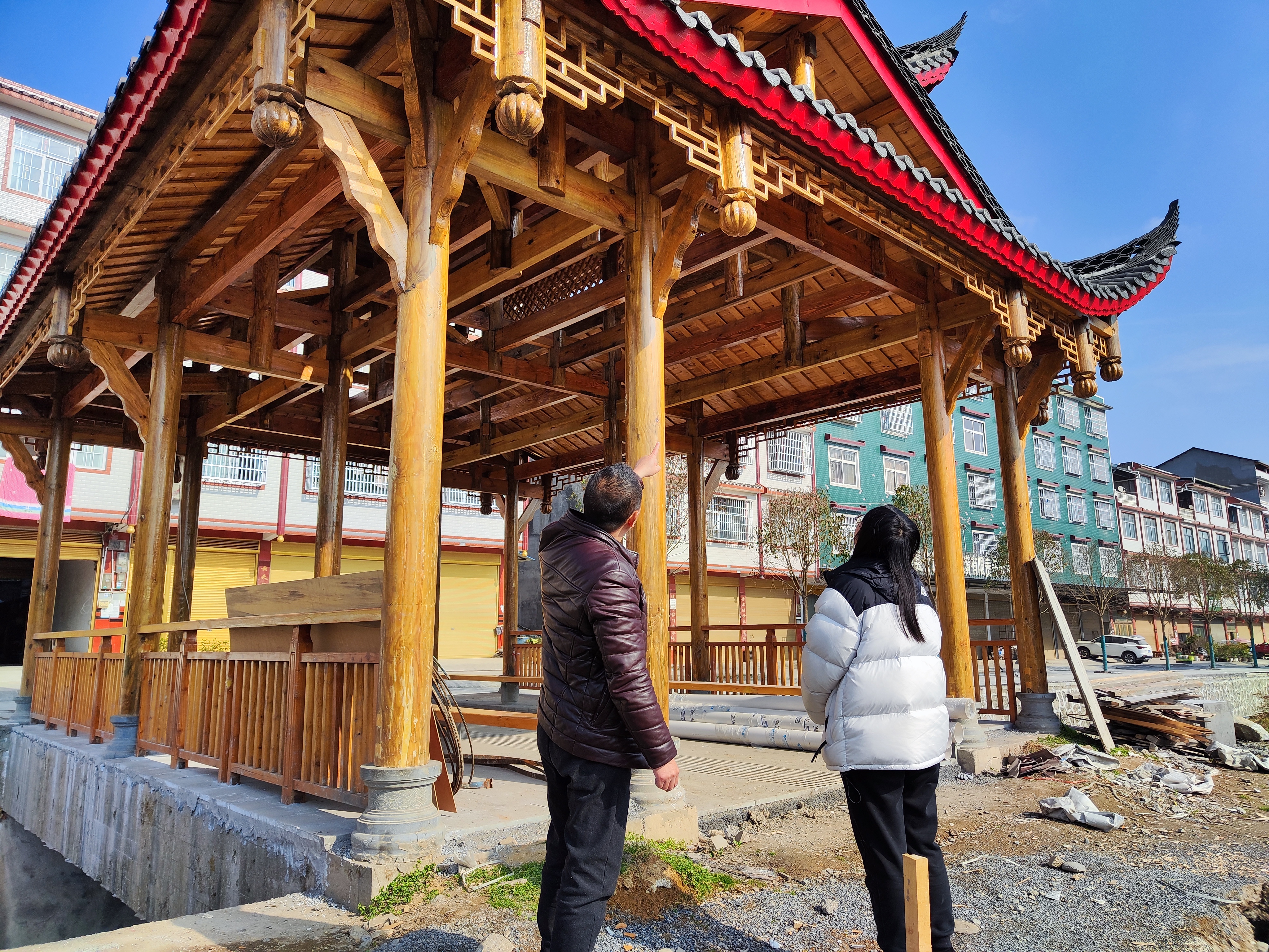 在服务中心副书记的带领下,徐莞懿同学依次参观了新建桥亭建筑和抗倭民族英雄唐仁的雕塑,并为雕塑的命名修改提出了个人意见。接着,徐莞懿同学借服务中心小组复查部分乡村振兴项目建设情况的机会,与其共同前往了更偏僻的几个村落,参观了茶园、茶道和当地特产葛仙米的生长环境。在这里,徐莞懿同学感受到了服务中心工作人员严谨勤恳的工作态度和为人民服务的一腔热忱,认识到了乡村振兴的开展离不开基层工作人员的努力。