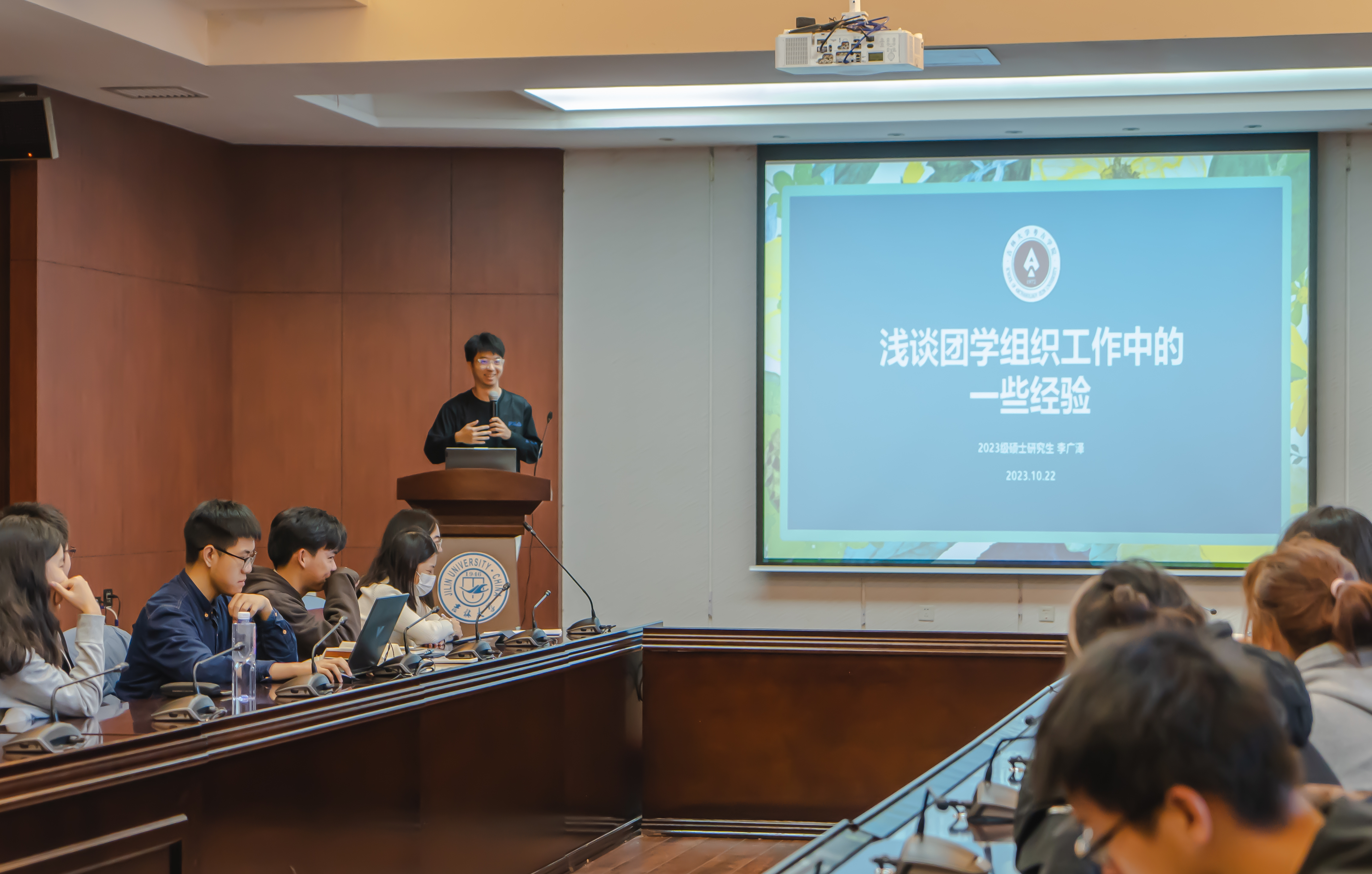 2023级研究生李广泽以“想得起、找得到、靠得住”开篇,从“整合活动、打造品牌”“迎合需求、发挥优长”“凝心聚力、互助前行”三方面展开详细讲述,同时以科研学术部青苗计划系列活动为例进行具体分析,希望同学们明确发展现状与工作职责,在丰富优势活动的同时积极学习创新,坚持多元特色发展。