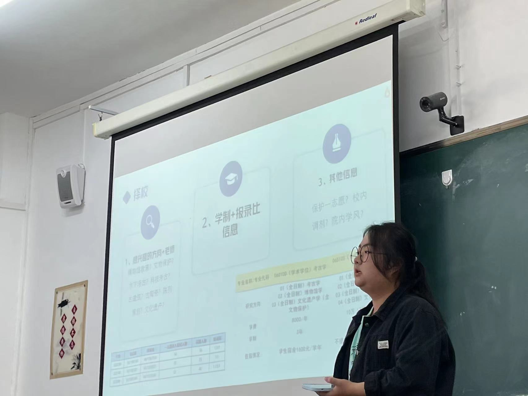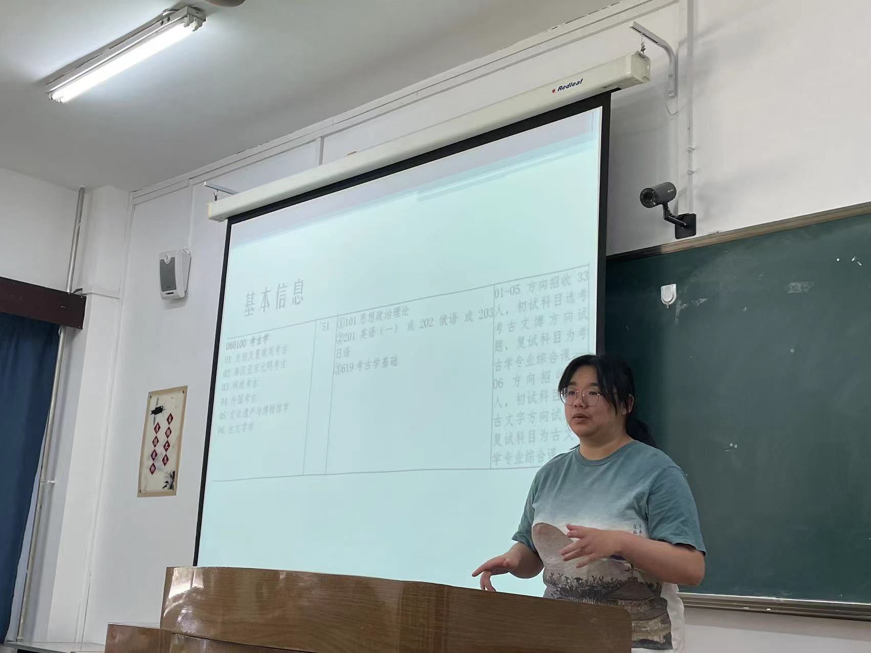明年此日青云去,却笑人间举子忙。为帮助同学们更全面深入地了解考研,合理制定备考策略,5月21日,太阳成集团tyc234cc科研学术部在敬信教学楼A区109教室举办了“‘研’途相伴,一‘研’已定”考研专场分享会。会议于下午2时30分正式开始,由汪嘉译同学主持,邀请了来自太阳成集团tyc234cc2019级考古学专业的董翰飞、徐畅萱、王昱林和文物与博物馆学专业的徐逸凡四位同学分享自己的考研经验与心得体会。