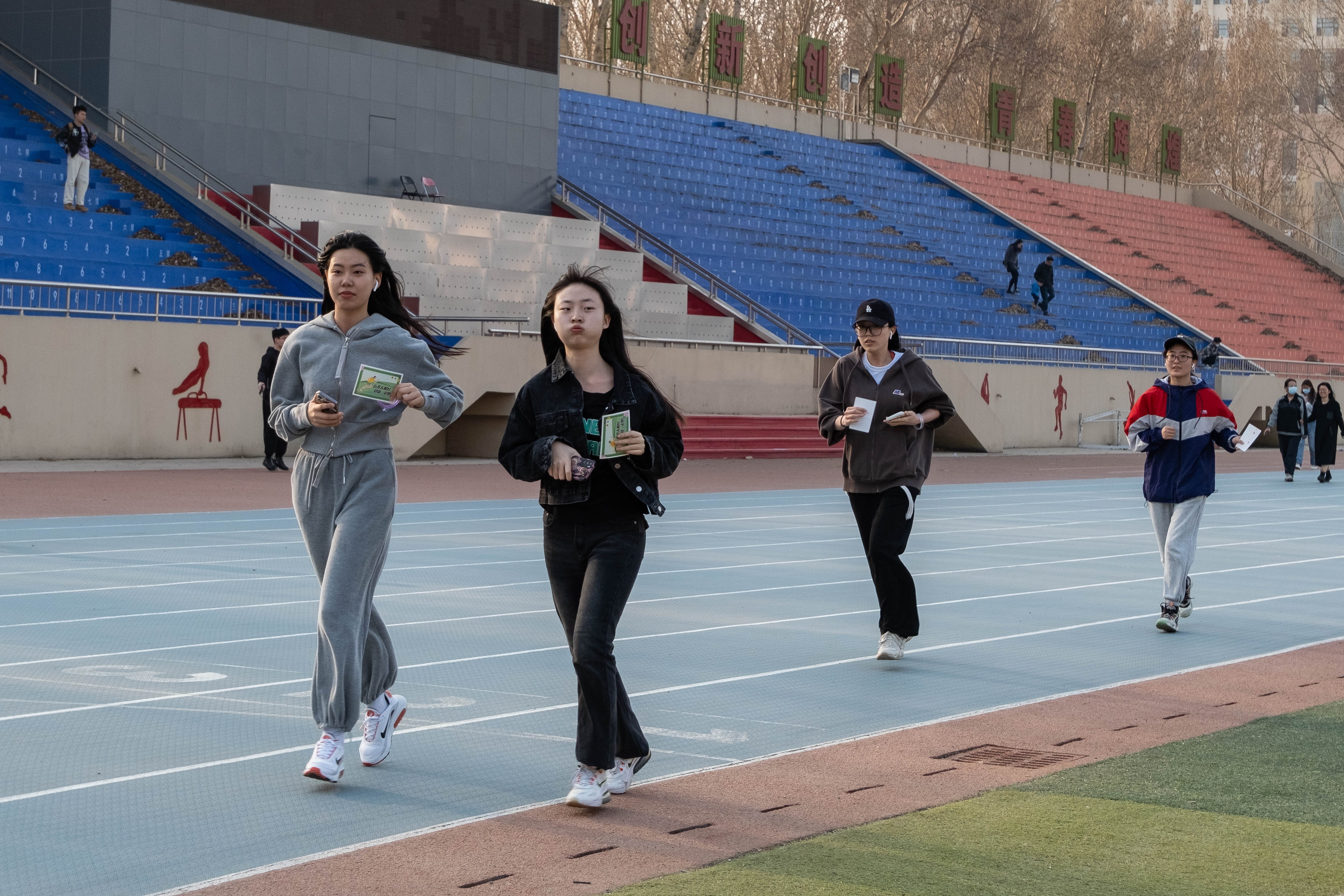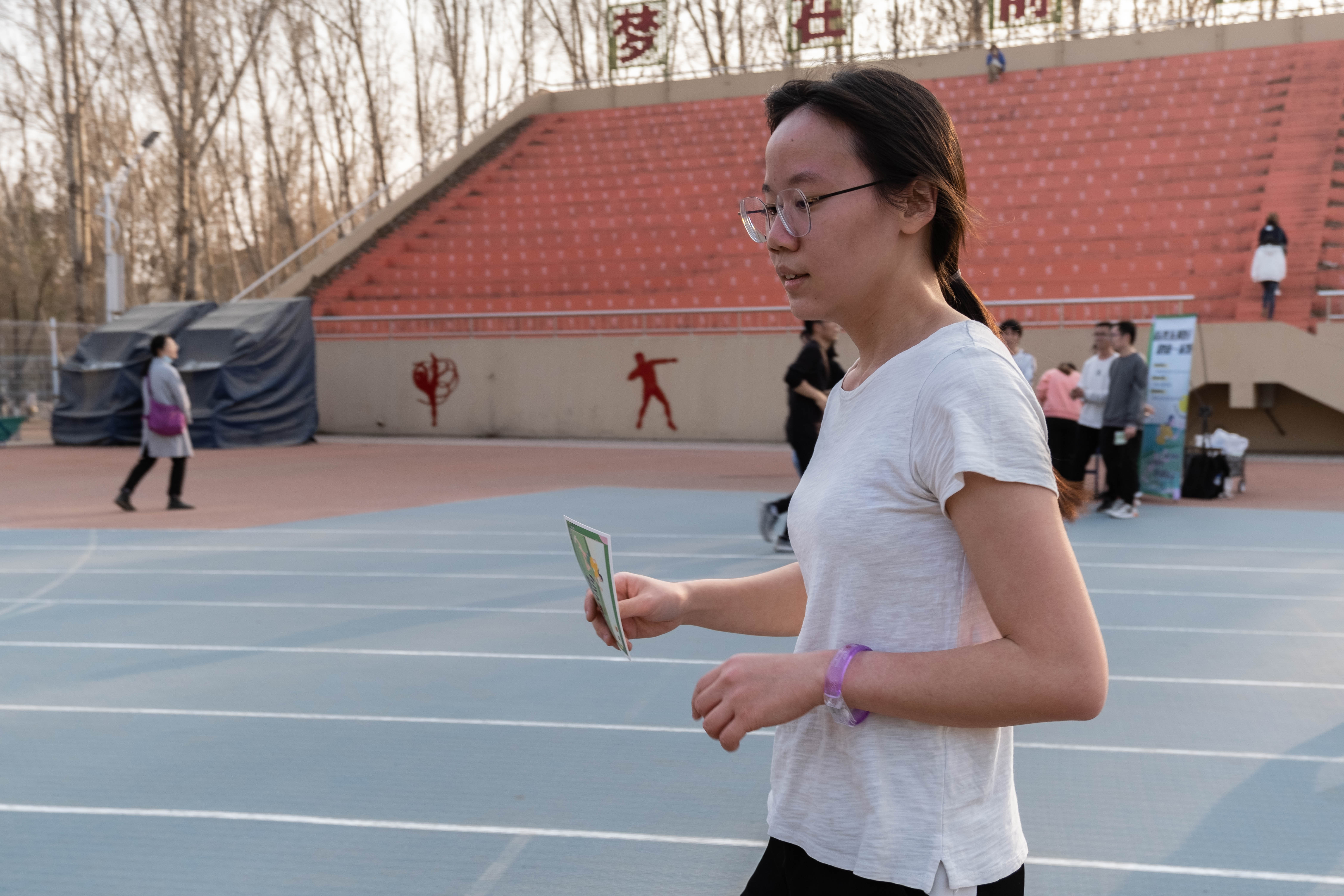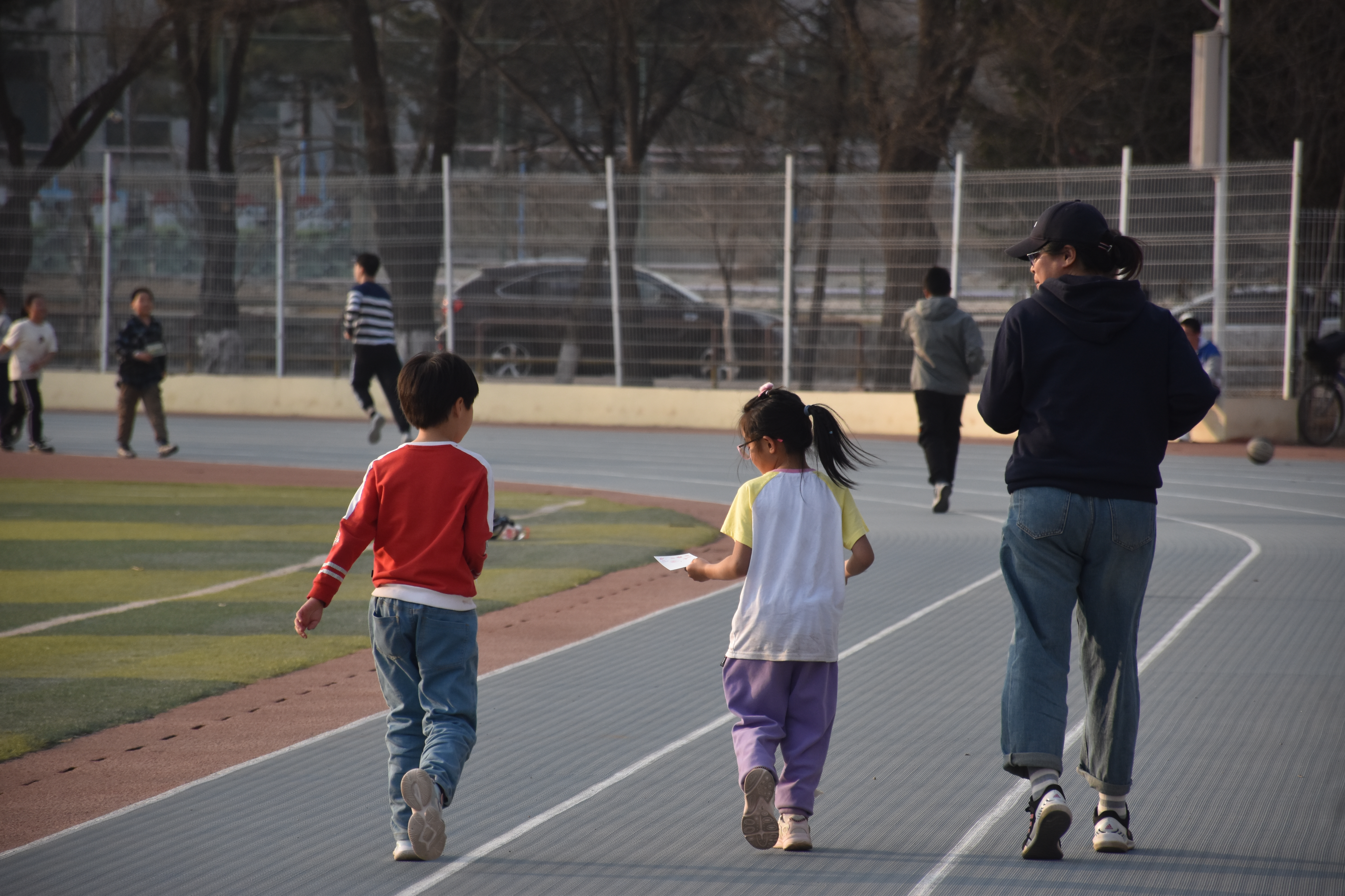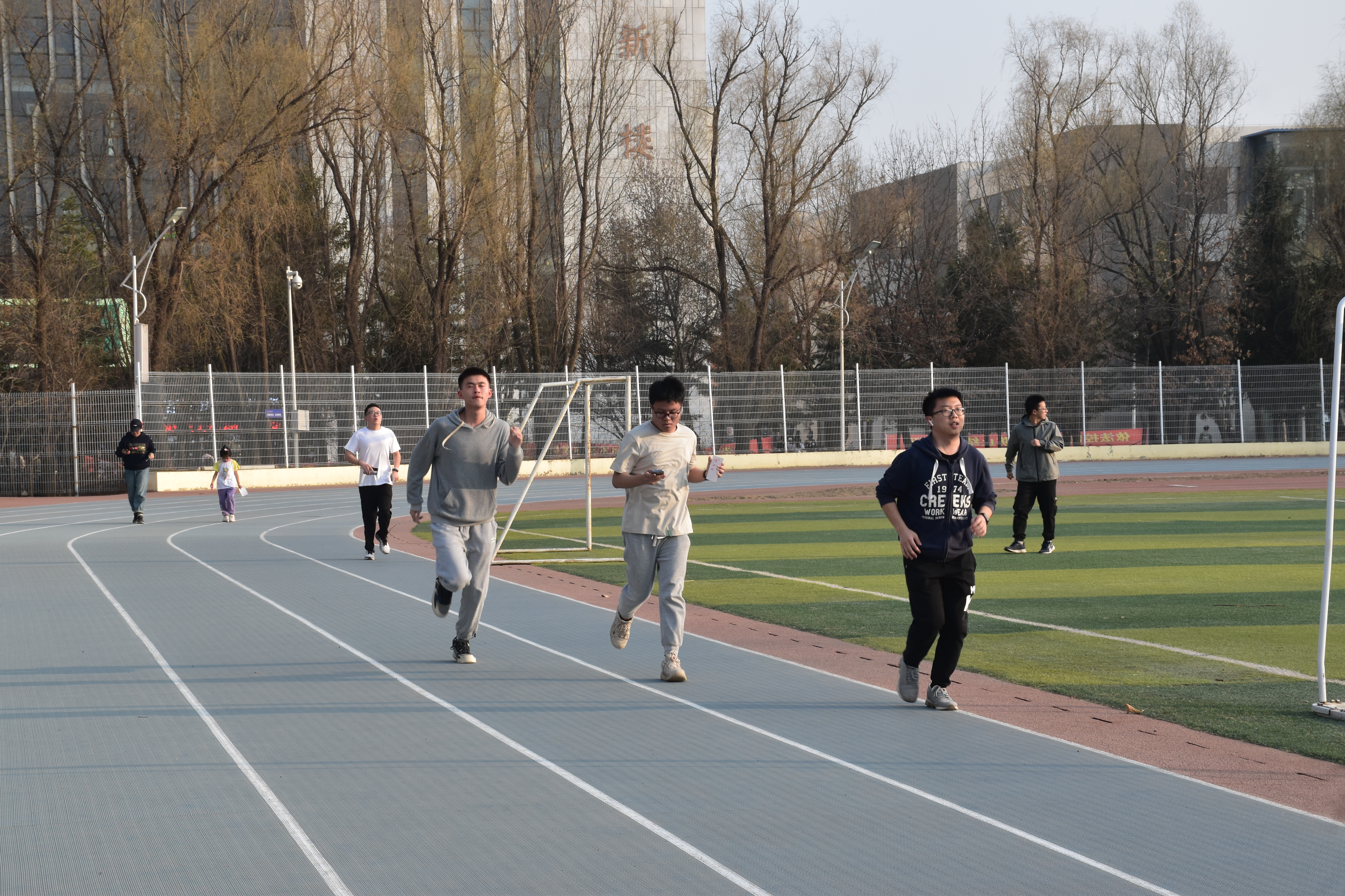 4 月 1 日下午4点,活动正式开始。同学们对此次活动表现出了很高的热情,纷纷踊跃报名参加。同时也吸引了很多在运动场玩耍的小朋友,他们在家长的指引下,戴上定制奔跑手环,蓄势待发。随着第一批报名的同学登记成功,大家走上跑道,沉浸在赴往春日的路途。晚上8点30分,第一日的活动落下帷幕,同学们在锻炼身体、放松心情的同时收获了运动的成就感和喜悦感。第二日下午4点,活动继续开展。许多同学突破了自己的目标圈数,赢得了精美的奖品。运动结束后,同学们纷纷与活动标语合影留念,留下珍贵的回忆瞬间。