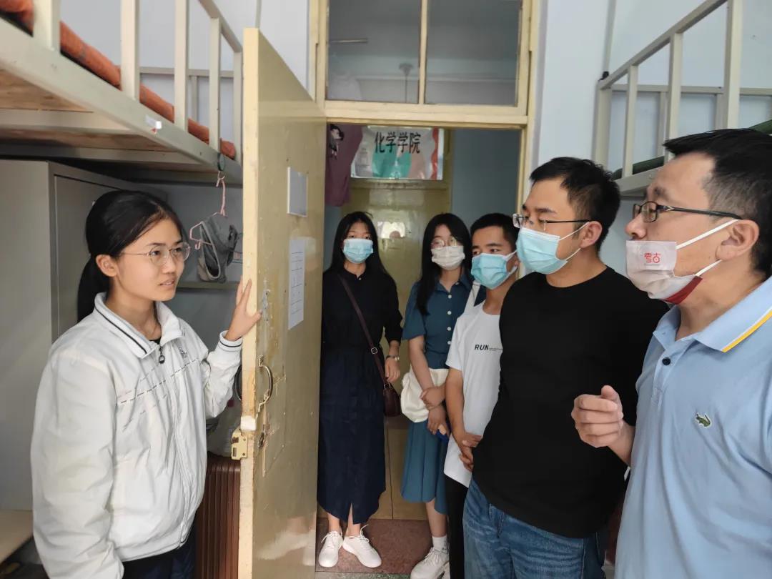 探访队伍走进每一间新生寝室,悉心查看了同学们的住宿环境,与同学们进行了亲切的交谈。他们细心询问了同学们来自的省份,询问同学们是否适应新的生活环境、是否适应校园生活,与同学们就生活和学习等方面的问题进行了深入交流,并叮嘱同学要及时向老师反映生活中的遇到的困难,老师们会帮助大家及时解决。同学们对老师无微不至的关心表示了感谢,一致表示对宿舍条件很满意,对自己选择的专业有很深的兴趣,对未来的老员工活充满了期待。