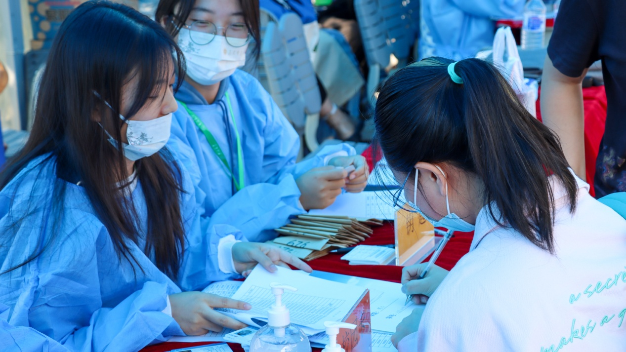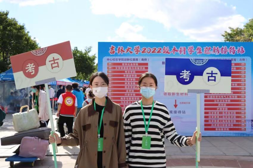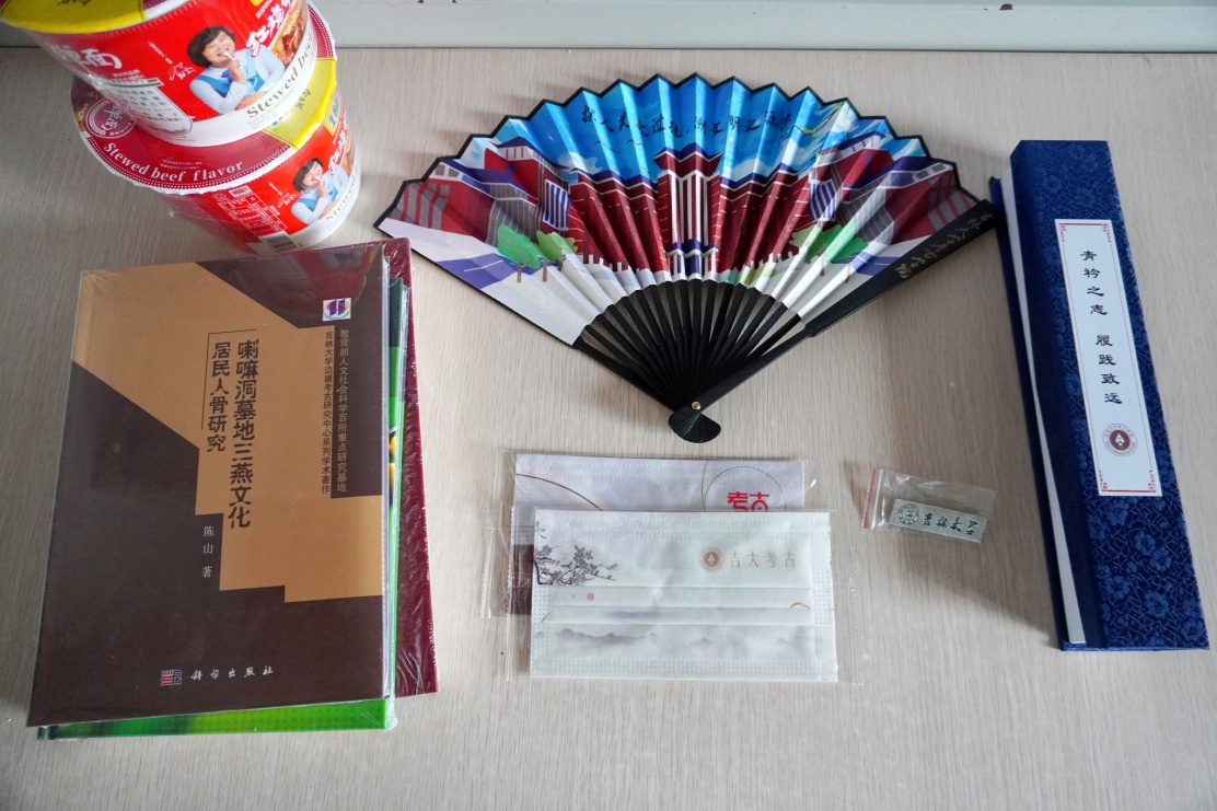 在迎新正式开始之前,公司为22级考古新生们准备好了“迎新礼包”。为配合疫情防控,也为大家减轻行李负担,专业类礼品书籍提前放在了员工寝室的桌子上,等待各位小主人亲自揭晓。定制的精美折扇,吉大考古文创口罩,则是在迎新现场亲手交给新同学们。