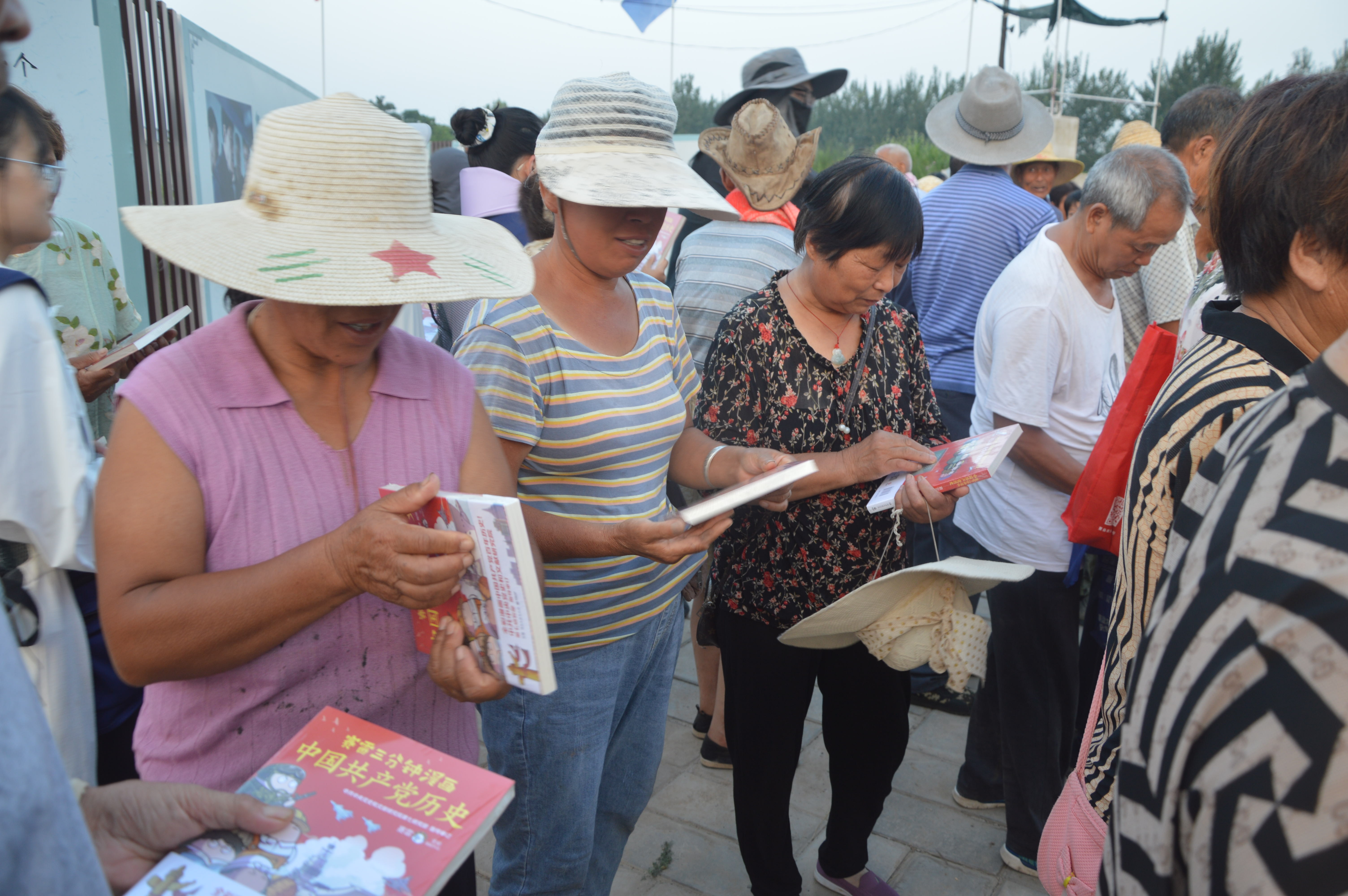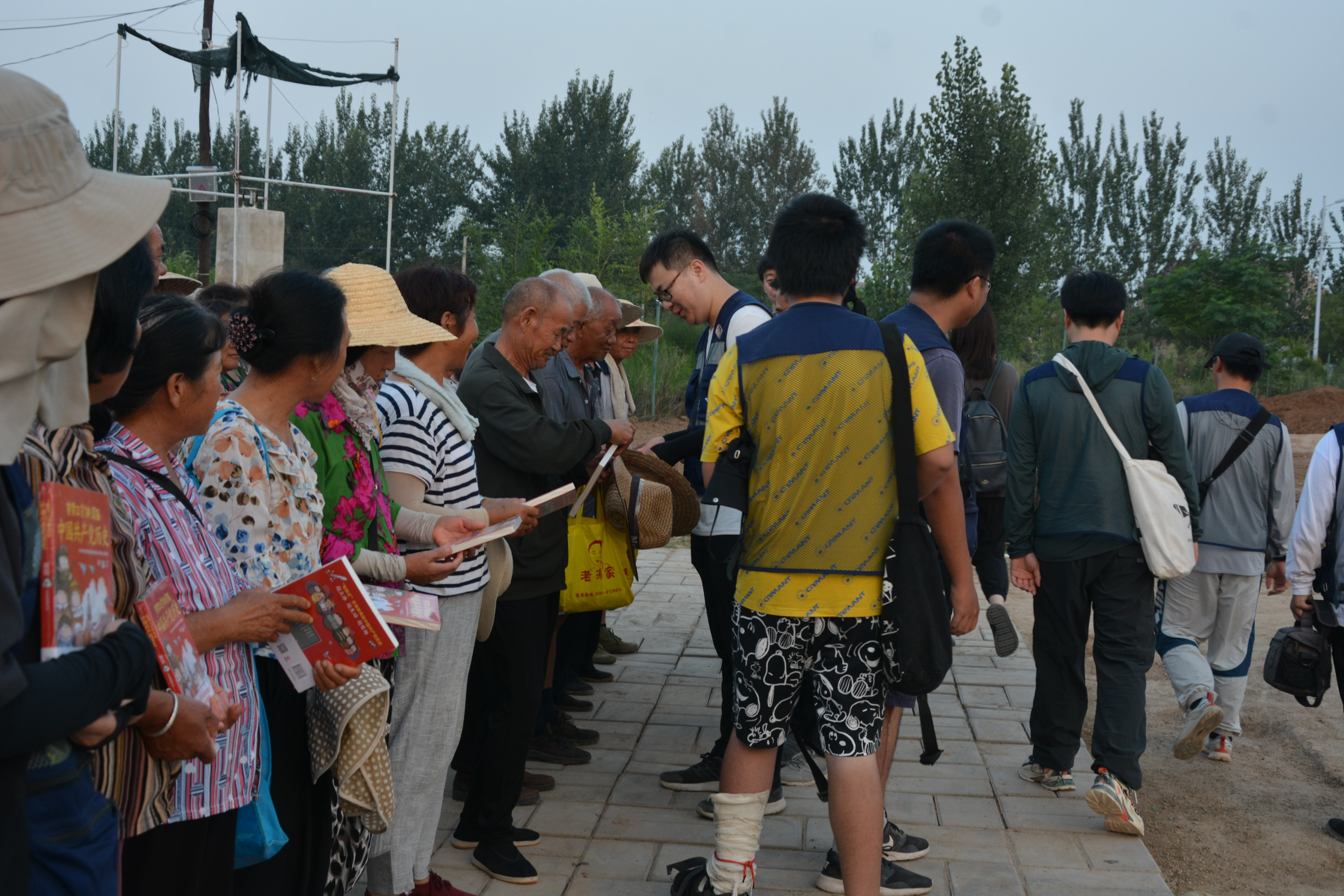 党史宣讲结束,赠书仪式正式开始。团队全体成员分别向每一位朝夕相伴的民工师傅送上书籍,同时也送去了红色知识与革命精神。书籍不仅适合民工师傅了解党史故事,也能让他们把红色精神传回家中、带到街巷、播撒乡镇角落,使街坊邻居、黄童白叟同样接受红色理念、革命传统的精神洗礼。这些平日里与同学们一同奋斗在考古田野一线的民工师傅,难掩兴奋地翻阅手中的书籍,在简明易懂的图画中感受到党史魅力,深入了解党的优良传统和作风。活动结束后,实践团队全体师生与民工师傅合影纪念。