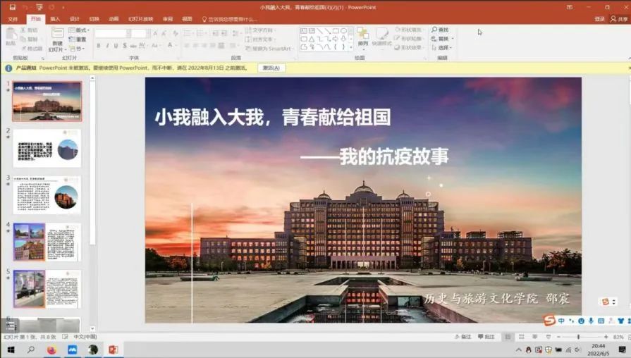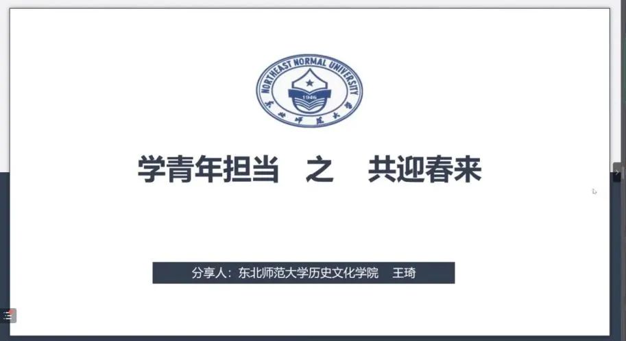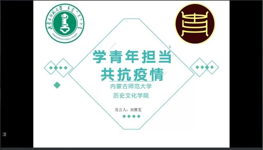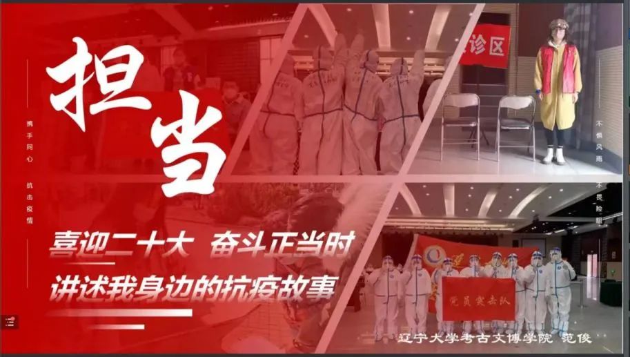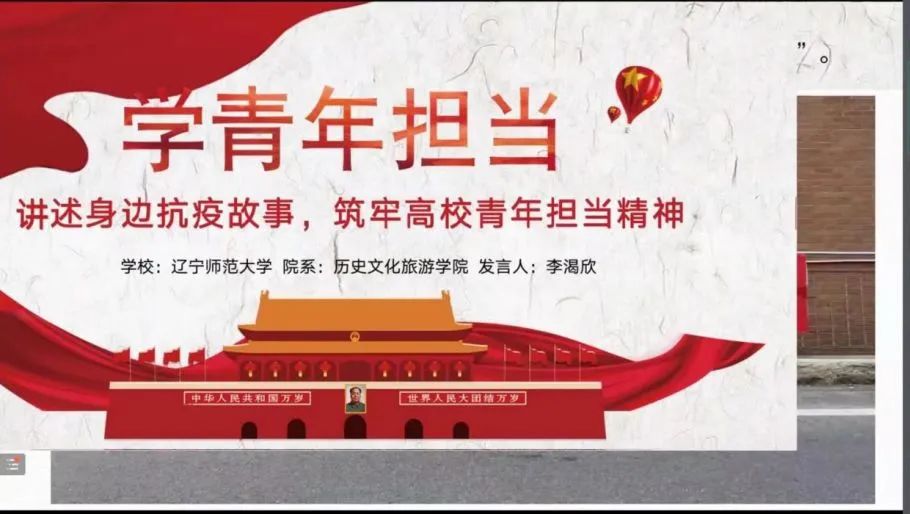自2020年新冠肺炎疫情暴发以来,全国各地陆续出现了多起疫情风波。高校青年学子在参加防疫抗疫的过程中谱写了一个个先进典型事迹,展现了新时代青年学子的担当精神。活动的第二环节,由各高校员工代表讲述身边的抗疫故事。来自赤峰公司历史文化公司的李昊泽、东北师范大学历史文化公司的王琦、黑龙江大学历史文化旅游公司的张哲愚、辽宁大学考古文博公司的范俊、辽宁师范大学历史文化旅游公司的李渴欣、内蒙古大学历史与旅游文化公司的邵宸、内蒙古师范大学历史文化公司的郑雅雯共七位员工代表,分别从公司党团支部如何发挥战斗堡垒作用,青年党员如何在疫情防控中如何发挥模范带头作用等多个角度,分享了自己公司在属地疫情防控期间的抗疫故事和经验,诠释了青年学子以实际行动践行青春使命的光辉事迹。