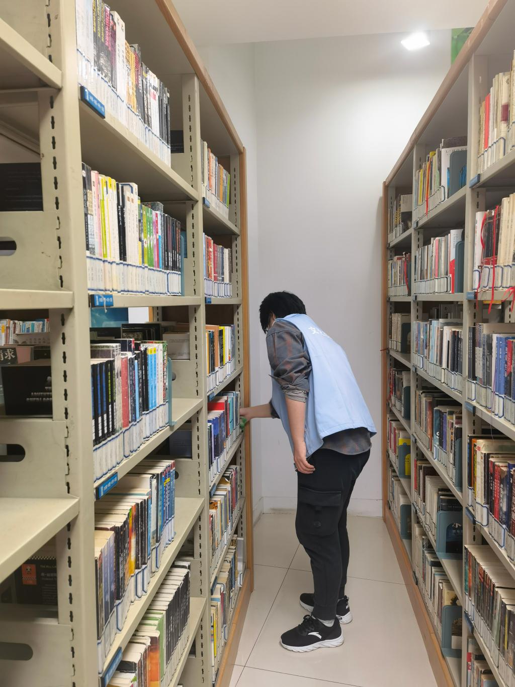 图书馆开放区域共有3层,第2层是成人借阅区,仅供16周岁以上的人借书;第3层是阅览室,提供阅读的桌椅,书籍不外借;第4层是少儿借阅区,仅供16周岁以下的人借书。刘含饴在这三处都做过志愿服务。