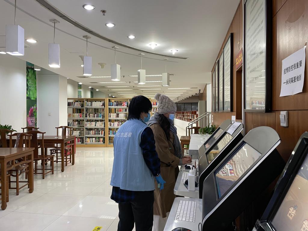 刘含饴同学的第一个体悟是,在图书馆的志愿服务,大部分时间都是做管理和引导工作。除去临近年关的2天外,每一天的每一小时,都有读者来阅读或者寻找书籍。因为图书馆的签到系统升级,从最初的扫健康码刷图书卡变到了现在绑定人脸刷身份证,读者还在适应期,时常会有不清楚操作的读者从侧门没有刷卡就进入。还有读者没有提前进行网上预约就要进馆借书。虽然有两位图书馆老师在岗,但也不能保证管理无漏。此外,一些老年读者对自助借还机的适应性不佳,需要手把手一步步地进行教学,才能学会使用。而且,还有很多新来的读者,并不熟悉馆内图书排架的顺序,不能做到自助找书,需要在岗人员帮助查找。很多时候,这些事是同时发生的,这就需要刘含饴一边全神贯注协助读者查找借阅图书,一边帮助图书馆的老师减轻管理压力。
