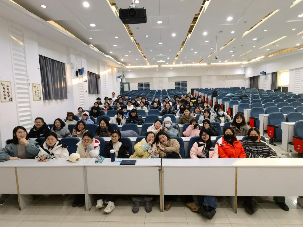 会上,马嘉男老师就离校返校要求、假期安排、安全教育等方面作了详细说明。叮嘱同学们离校前及时在网上提交离校申请,离寝前要做好宿舍安全检查,关闭电源、门窗等。同时叮嘱大家返乡途中要做好个人防护,带好随身证件,注意交通安全。对于家乡处于疫情风险地区的同学,应当了解疫情防控政策,积极配合当地防疫安排。最后,马老师对同学们的假期生活提出了几点期望,要求大家在家期间做好每日健康打卡;保持良好的卫生习惯,合理安排作息,加强体育锻炼;自觉遵守疫情防控规定,增强安全意识和法制观念;学习新知识,锻炼新才干,在新的一年获得新的成长与进步。会议结束后,全体师生合影,用相机定格本学期最后相聚的美好瞬间。