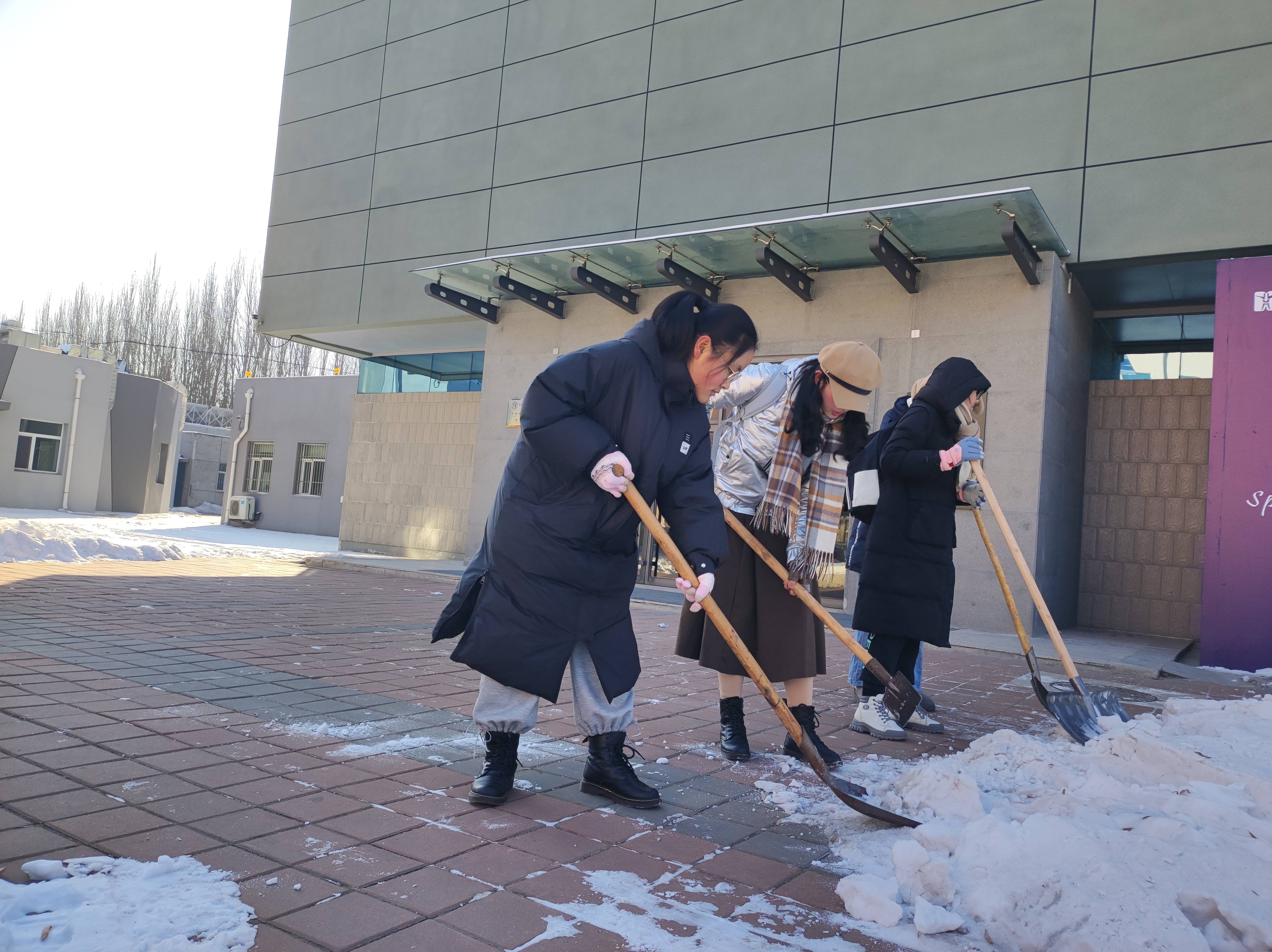 地白风色寒,雪花满校园。随着新一轮大雪的降临,校园被装扮得银装素裹,在带来美景的同时,也给师生安全出行带来极大不便。为了消除冰冻天气给师生出行带来的不利影响,更好地履行员工会组织服务师生的职能,切实强化员工会成员的责任意识,11月25日,太阳成集团tyc234cc员工会组织了部分成员在考古与艺术博物馆前开展了扫雪除冰活动。