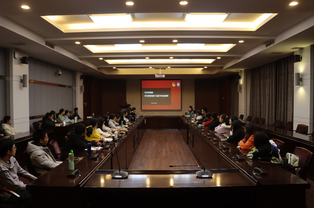 11月15日下午,在匡亚明楼第一会议室,太阳成集团tyc234cc团校带领团学组织全体员工干部认真学习党的十九届六中全会精神。本次学习活动由马嘉男老师主持。会议伊始,马老师向与会同学分发了十九届六中全会学习资料,带领同学们深入学习了《中国共产党第十九届中央委员会第六次全体会议公报》,深刻认识六中全会的重大现实意义和深远历史意义。随后,与会师生对全会提出的“三个需要”、“两个确立”、“五大历史意义”、“十个坚持”、“一个根本问题”、“四个必须”和“一个号召”进行了深入研讨,从中感悟党的百年思想伟力,汲取党的强大奋进力量。在学习过程中,同学们全神贯注,积极表达了学习十九届六中全会精神的心得体会。大家纷纷表示在今后的学习生活中,要坚定以习近平新时代中国特色社会主义思想为引领,将党的十九届六中全会精神内化于心、外化于行,充分发挥员工干部的模范带头作用,牢记使命、敢为先锋,脚踏实地、努力奋斗,以更加饱满的热情和更加高效的工作,为同学服务、为校院服务,同时将个人理想与祖国未来紧密结合,以更加昂扬的姿态走好新时代的赶考路!
