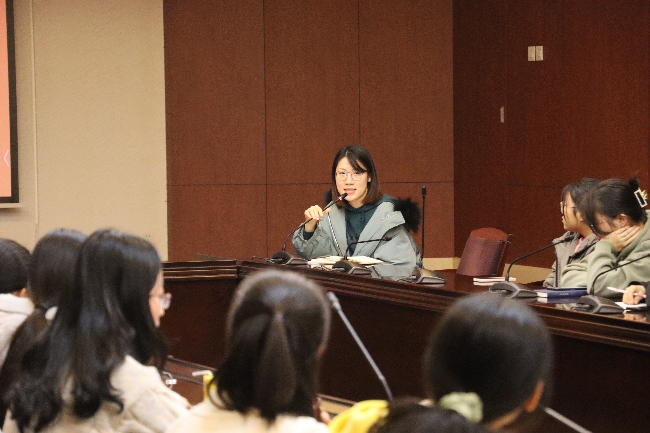接下来,马老师从十个方面指出了今后团学队伍建设的重点。马老师强调,团学组织应努力打造一种“家文化”,要增强各成员的团队归属感,进而提升团学组织这一整体的凝聚力和向心力。同时,员工干部也应时刻端正态度,积极调整心态,心怀大局意识、服务意识和标杆意识,弘扬创新精神和奋斗精神,胆大心细,努力将员工工作做实,做到员工心坎里。她提出,员工干部应明确自身定位,先员工、后干部,切勿本末倒置,注重专业学习对员工工作的方向指引、视野拓展,并在工作中学习掌握新技能以提升专业素养,实现员工和干部两重身份的相互促进,全面发展。