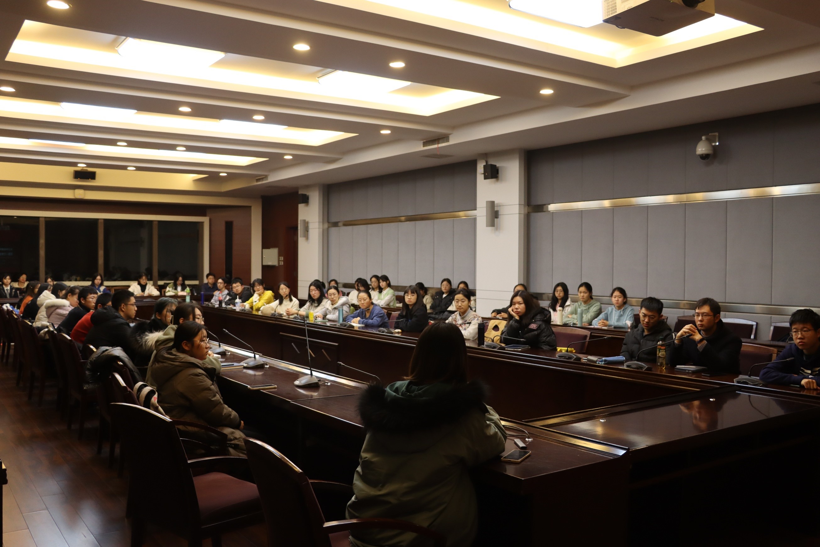最后,马老师对本次会议进行了总结,对团学组织的建设发展提出了鼓励和期许,并部署了下次座谈会的主要任务,为下次座谈会奠定基调。下午6时许,本次座谈会暨第一次培训会圆满结束。