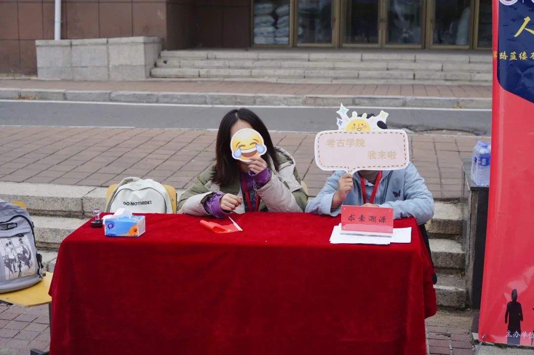 活动当天,萧瑟的秋风平添了几分寒意,但这丝毫不曾影响现场的热烈气氛。从上午7时起,近50名现场工作人员以最饱满的热情投入到搬运整理桌椅、宣传板、医药箱、口罩等活动物资中,并向各打卡地点分发展板、易拉板、打卡本、打卡地图、徽章、钥匙扣等彰显考古特色与百年党史的活动道具与文创纪念品。
