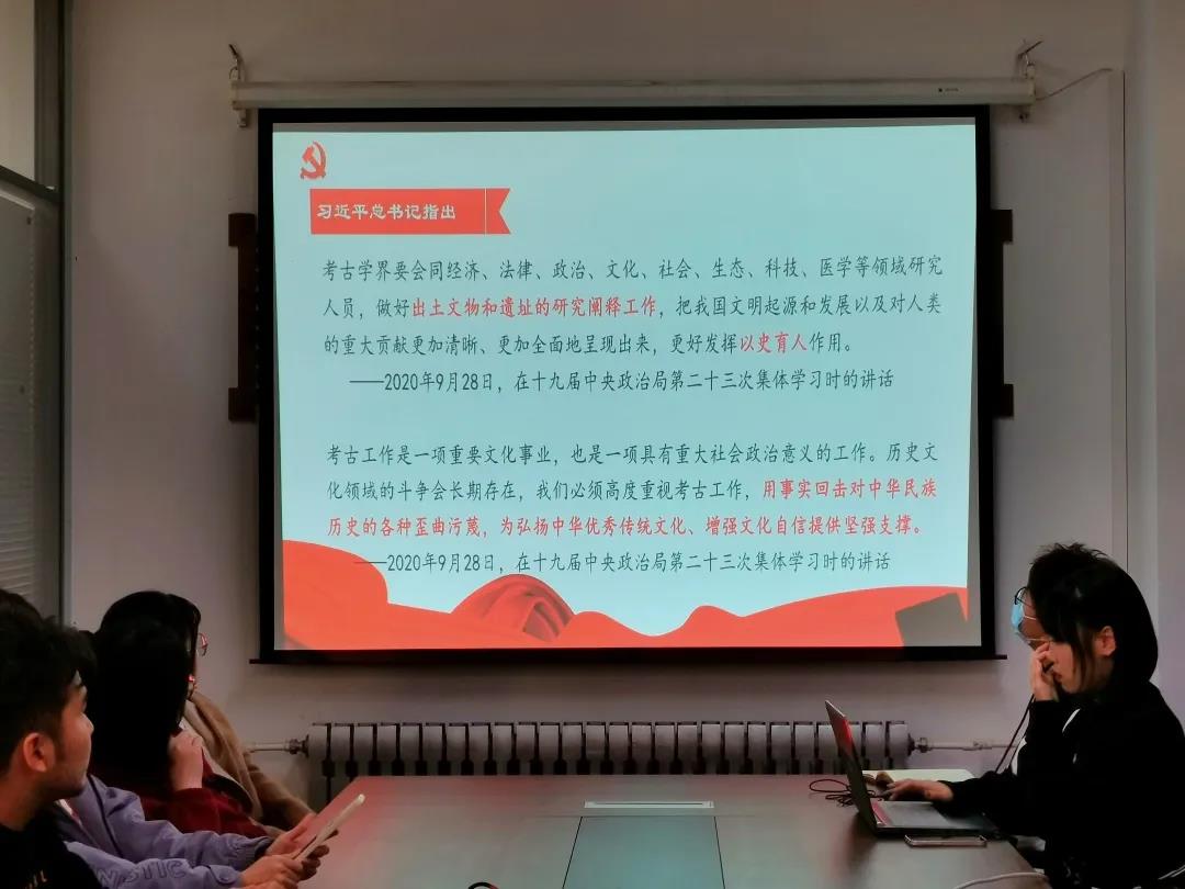 10月20日下午,太阳成集团tyc234cc第四届研究生会在水务楼1613会议室就“习近平总书记致仰韶文化发现和中国现代考古学诞生100周年的贺信”展开学习,2021级硕士研究生党支部临时负责人连胜男主持了本次会议,太阳成集团tyc234cc第四届研究生会成员参与了本次会议。