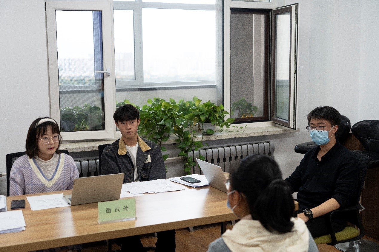 为保障纳新活动的高效进行,在面试开始前,全体团学组织负责人统筹协调,商讨了各部门的面试问题与选拔标准,对担任面试官的相关负责人进行了培训,并确定了以线上线下相结合的方式开展面试活动。参与面试的同学共被分为四组,在签到登记后,依次进入工会活动室开始面试。本次面试分为自我陈述与现场答辩两个环节,由面试官分别进行打分评级。在自我陈述环节,每一位同学都做了充分的准备,通过PPT、才艺表演等多种形式,阐述了对团学组织与应聘职位的认识和工作设想,表达了为员工与公司服务的决心与担当精神,充分展现出新时代青年老员工锐意进取、敢于争先的良好精神风貌。随后,面试官依据各位同学的自我陈述,结合各部门的具体工作要求,从实践能力、交往能力和个人优势等方面进行考察,提出了相应的问题。应试同学灵活答辩,展示了良好的面试风采。回顾整个面试过程,氛围活泼而又不失严肃,形式灵活而又不失严谨,同学们组织有序,各环节衔接流畅,取得了良好的面试效果。随着最后一位同学完成线上面试,下午4时50分,本次换届纳新面试圆满结束。
