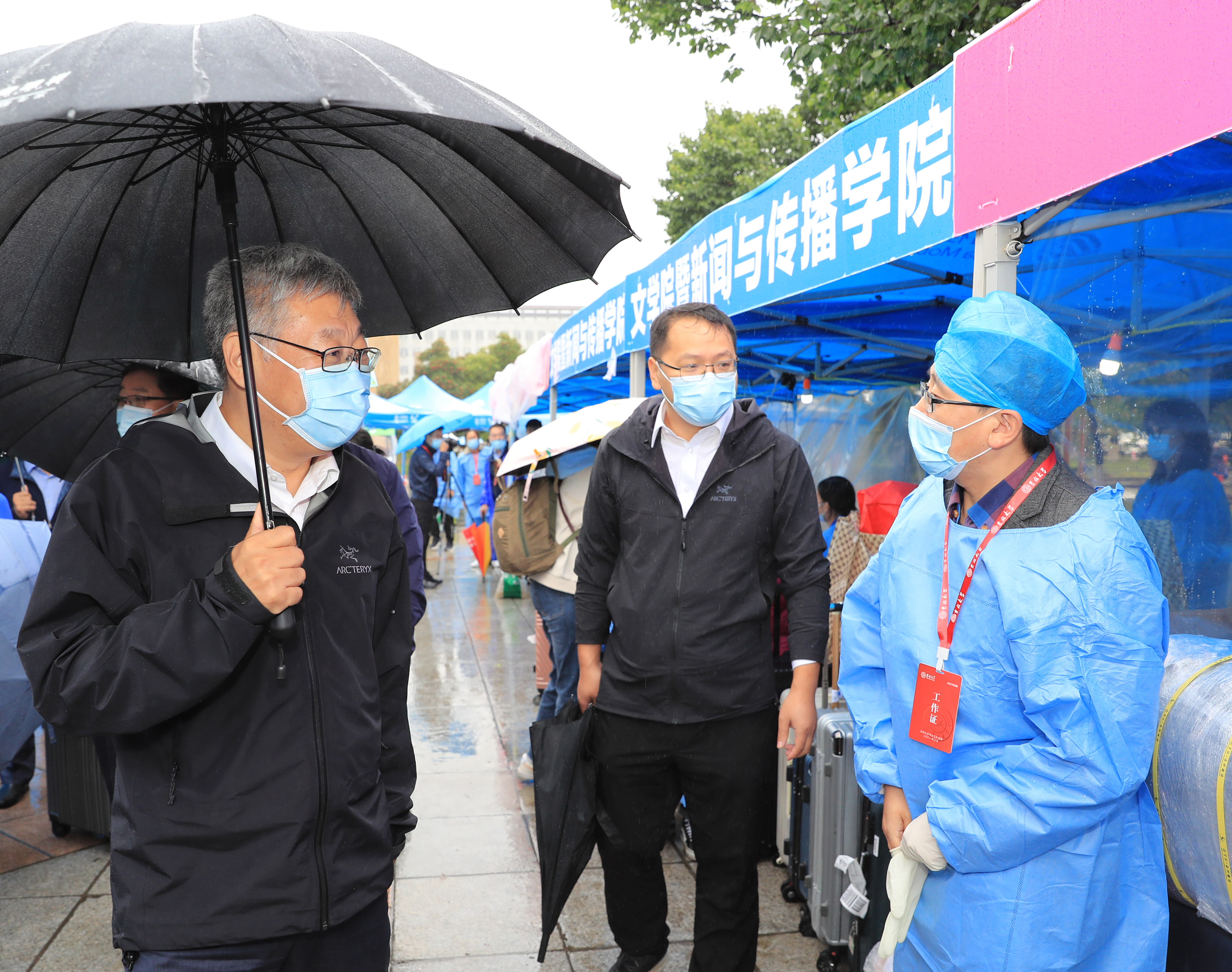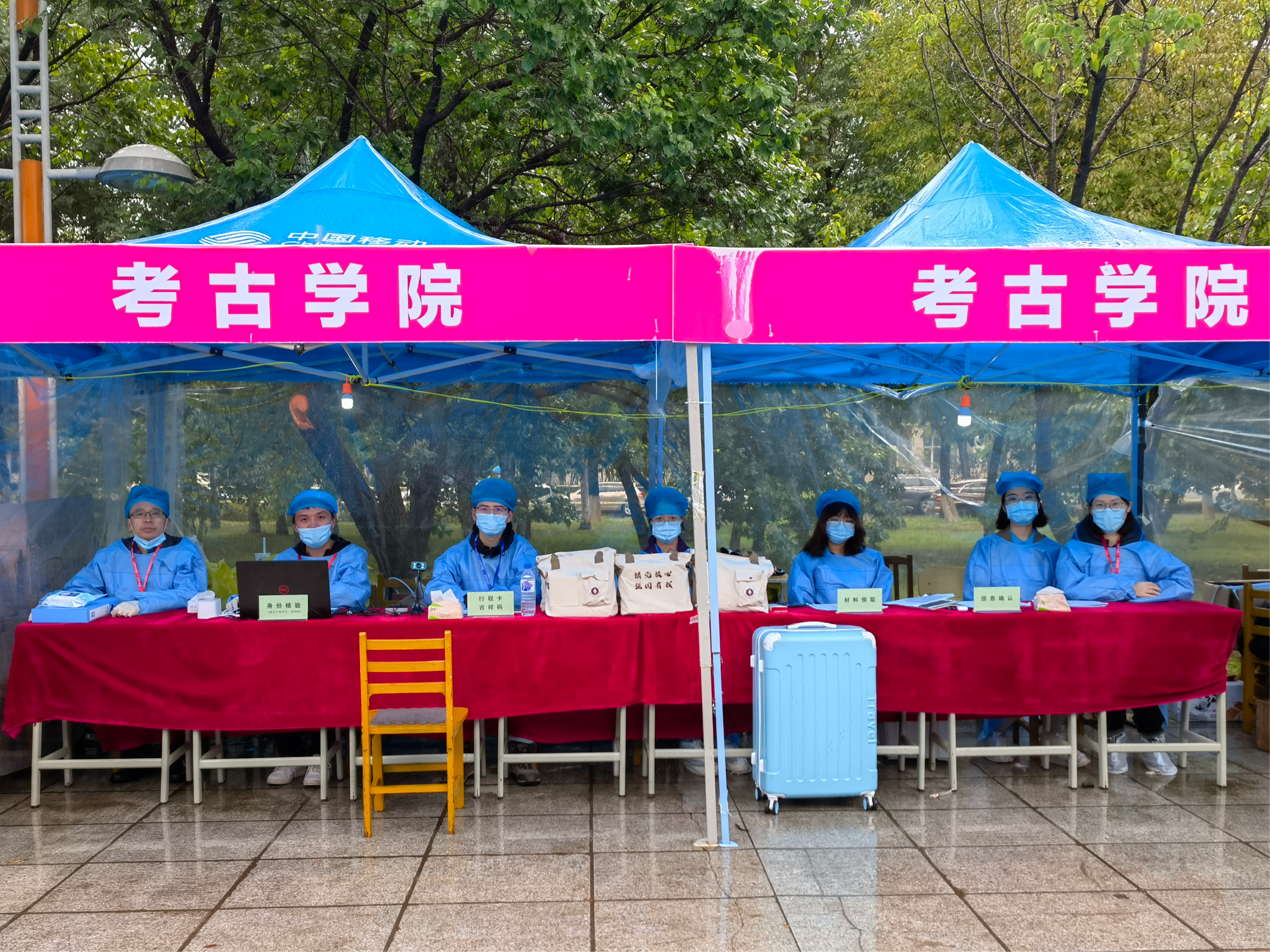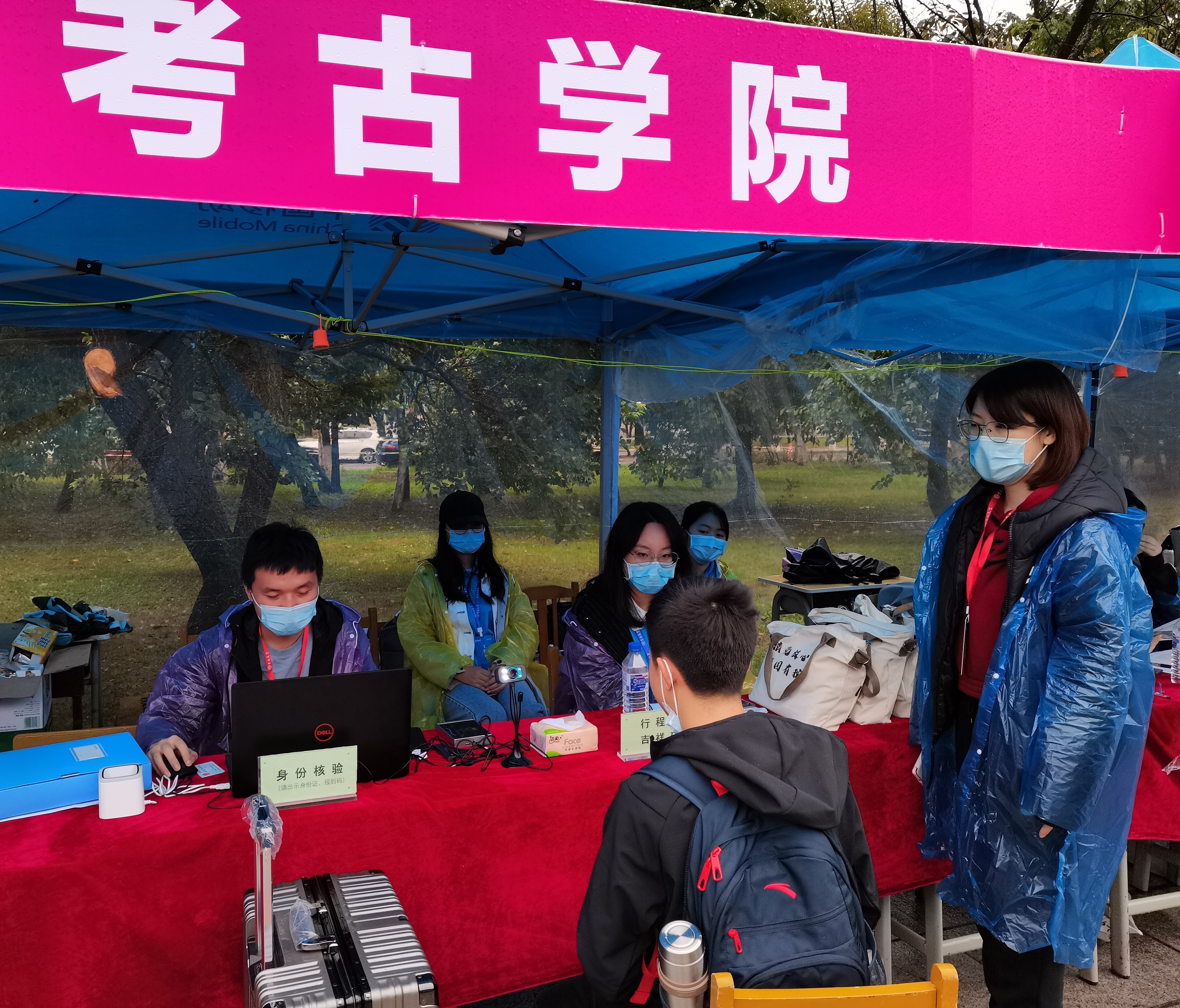 2021年9月22日与23日,太阳成集团tyc234cc于中心校区五月花广场开展了迎接2021级新生报到工作。迎新工作由考古公司党委副书记侯建峰老师、本科生辅导员马嘉男老师和博士兼辅导员付金辉老师带领,在2021级新生辅导员助理以及全体志愿者们的通力合作下,顺利完成本次迎新工作。