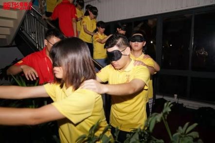 7月28日晚上,叶梦宇经历了一次印象深刻的体验式活动:蜕变。在老师们的指导下,所有营员手搭肩膀排成一队并带上眼罩,由老师引导依次经过转弯变道、室外水洼、上下楼梯等挑战环节,最后由智慧老人摘掉眼罩,重见光明。这种别开生面的体验式活动在培养团队协作精神、增进营员感情的同时,也让爱与温暖得到传递。其中不仅让人体会到挫折磨难之于个人成长成才的重要性,也让人懂得了信任、理解和帮助之于团队合作的重要性。
