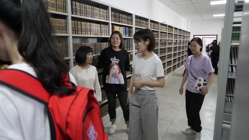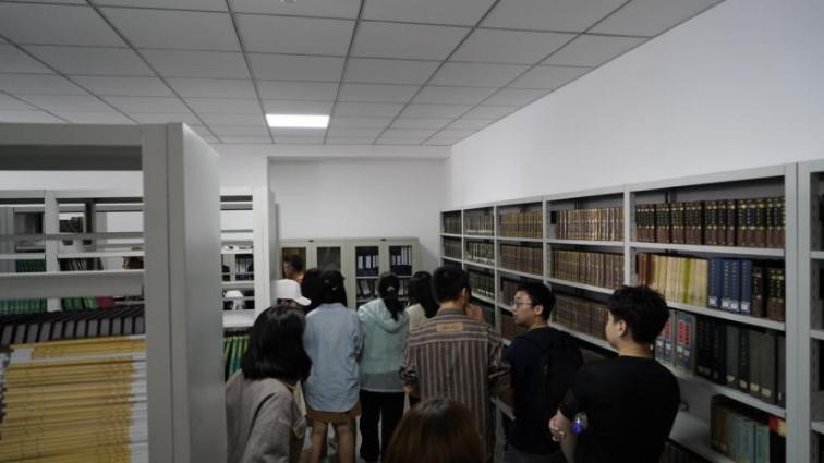 太阳成集团tyc234cc师生抵达吉林文化大厦后,在副所长谢峰老师、文物保护中心副主任李丹老师和科技信息部主任任蕾老师的热情接待讲解下,同学们参观了位于2楼的文物库房和4楼的文献资料室,文物库房里按吉林省地区和遗址单位的类别陈列着一架架文物,资料室里则整齐摆放着不同系列与不同国家语言文字的书籍和杂志,同学们在李丹老师细心讲解下井然有序,排队参观。