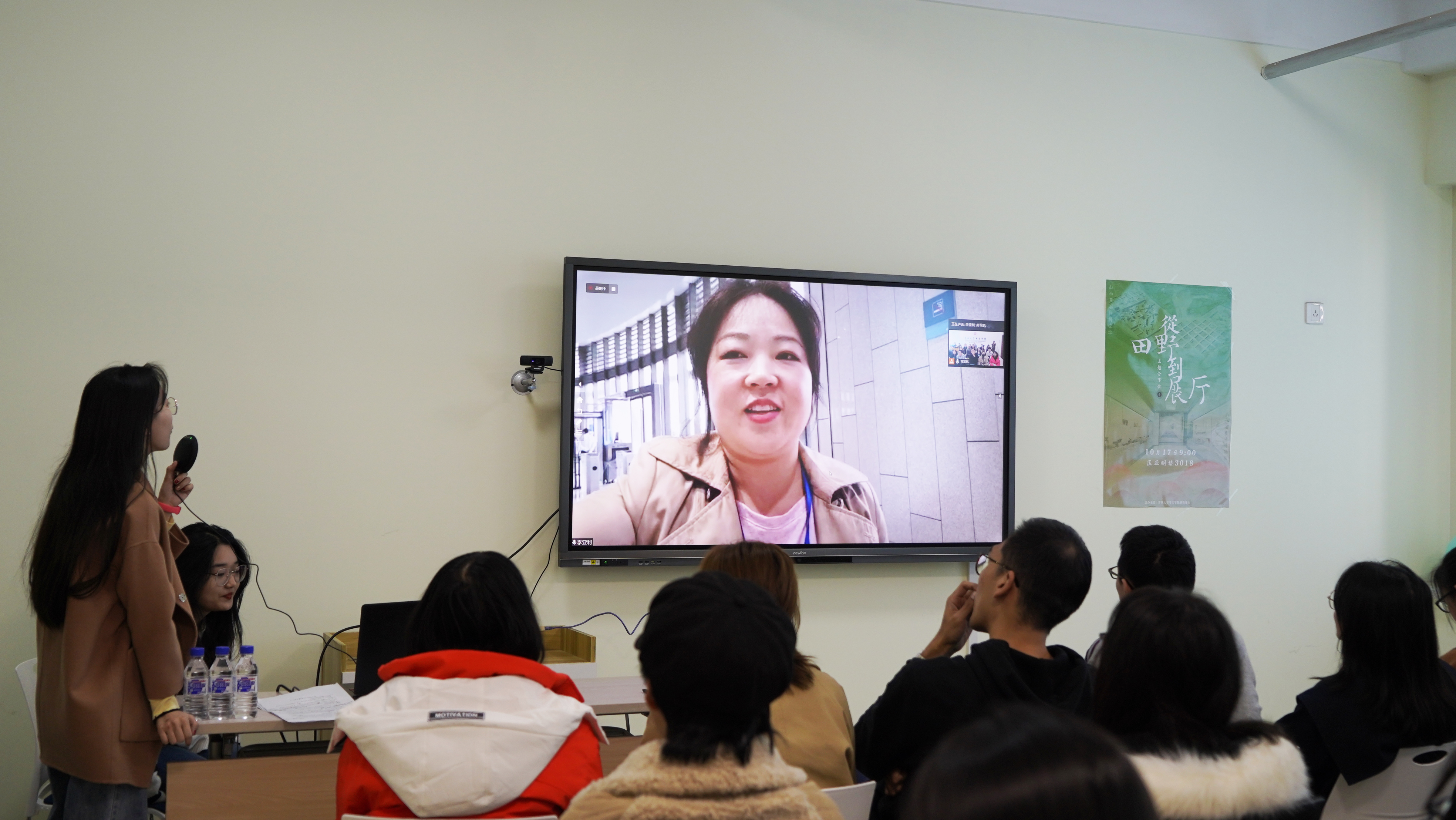 第二环节,与中国港口博物馆现场连线。由李亚利老师带领,三位实习员工代表,耿默兰、华天艺、周辰雨,先后汇报了良渚博物馆的实习情况,内容包括调查问卷、讲解服务、资料整理、社教的策划和执行等。随后,李老师带领现场观众云游了中国港口博物馆的“水下考古在中国”特色展。结束前,李老师细致地回答了现场同学的提问。