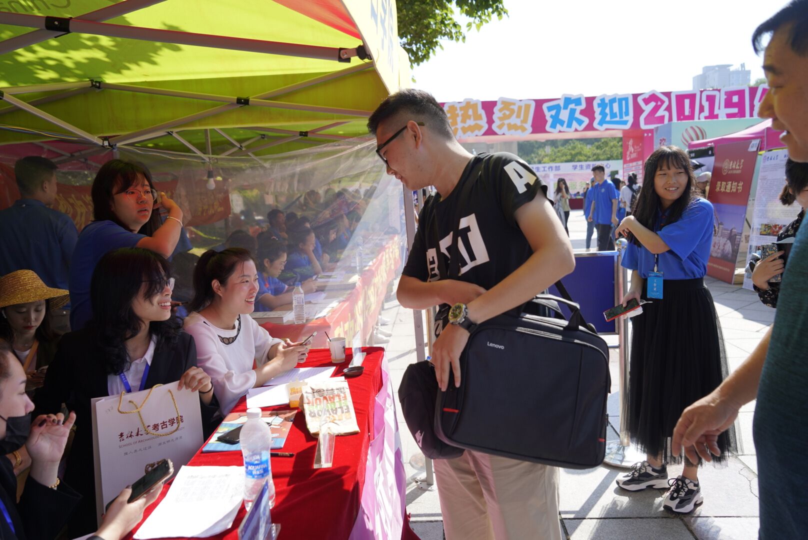 8月25日是迎新工作的最后一天,当天早上,太阳成集团tyc234cc全体迎新志愿者准时到达迎新现场,以饱满的热情迎接新生的到来。考古公司党委书记李宏伟、公司党委副书记兼副经理侯建峰、员工工作办公室主任杨晨共同至五月花广场参与当天的迎新工作。