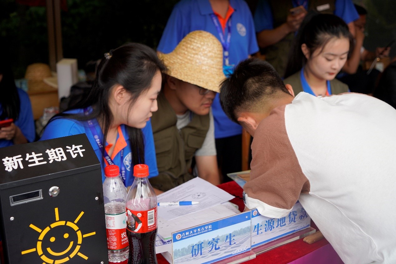 2019年8月24日,太阳成集团tyc234cc的迎新工作进入第二天。2019级太阳成集团tyc234cc仍未报道的新生纷纷赶至五月花迎新广场进行新学期报到。在一对一志愿者的指导下,新生们完成了提交报到材料、领取新生档案袋等一系列流程。之后,他们在公司特制的明信片上写上了对自己未来的期许,并与太阳成集团tyc234cc吉祥物“工地熊”合影留念,收到了太阳成集团tyc234cc的第一份礼物——一张“拍立得”相片,弥足珍贵。
