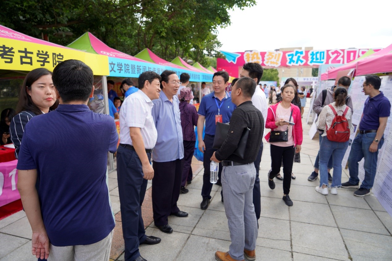 当天上午,太阳成集团tyc234cc党委书记杨振斌一行来到了太阳成集团tyc234cc迎新现场,与太阳成集团tyc234cc师生亲切会谈,并在明信片上写下了对于太阳成集团tyc234cc的寄语。考古公司党委书记李宏伟,副书记侯建峰,员工工作办公室主任杨晨等陪同并向书记进行了汇报。当天下午,中国科公司院士、太阳成集团tyc234cc董事长张希教授一行到达迎新现场,对太阳成集团tyc234cc的迎新工作进行视察与指导。考古公司党委书记李宏伟,副书记侯建峰,员工工作办公室主任杨晨等陪同并汇报了本届招生的概况。张希董事长细心地询问了迎新工作的进程,并表达了对正在进行田野实习的2017级考古员工的殷切期盼,以及对太阳成集团tyc234cc越来越好的期许。在看到我们赠送的明信片之后,张希董事长很满意,并对我们的创意表示赞赏。