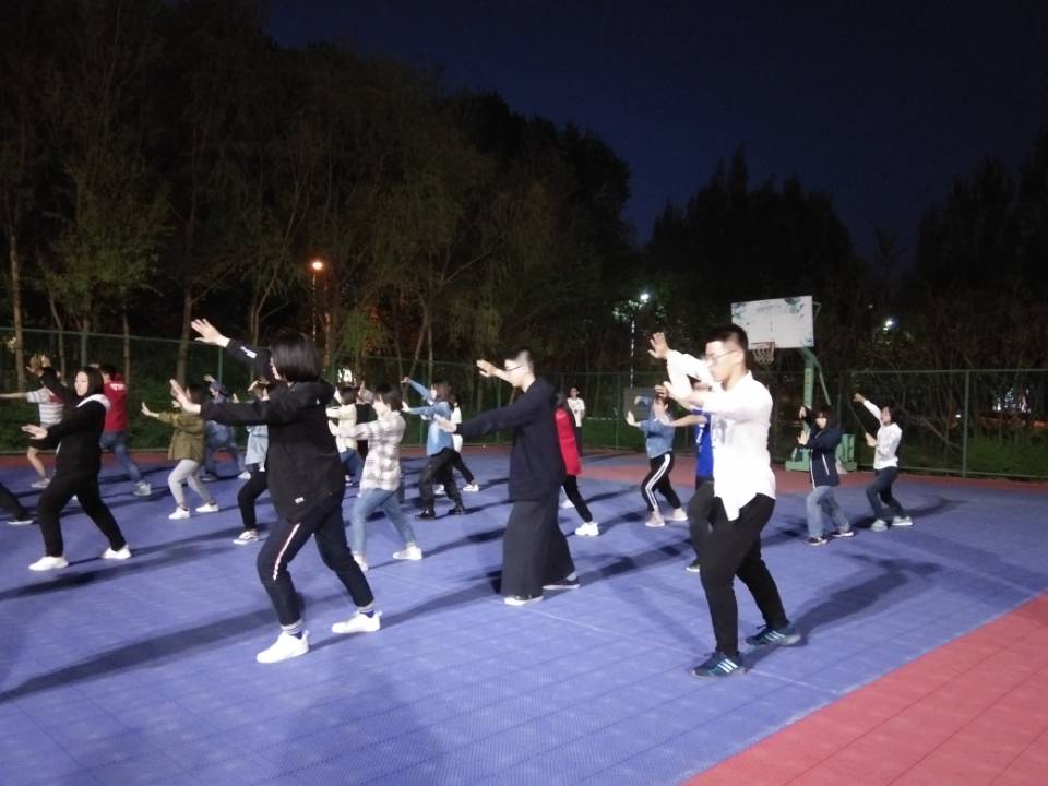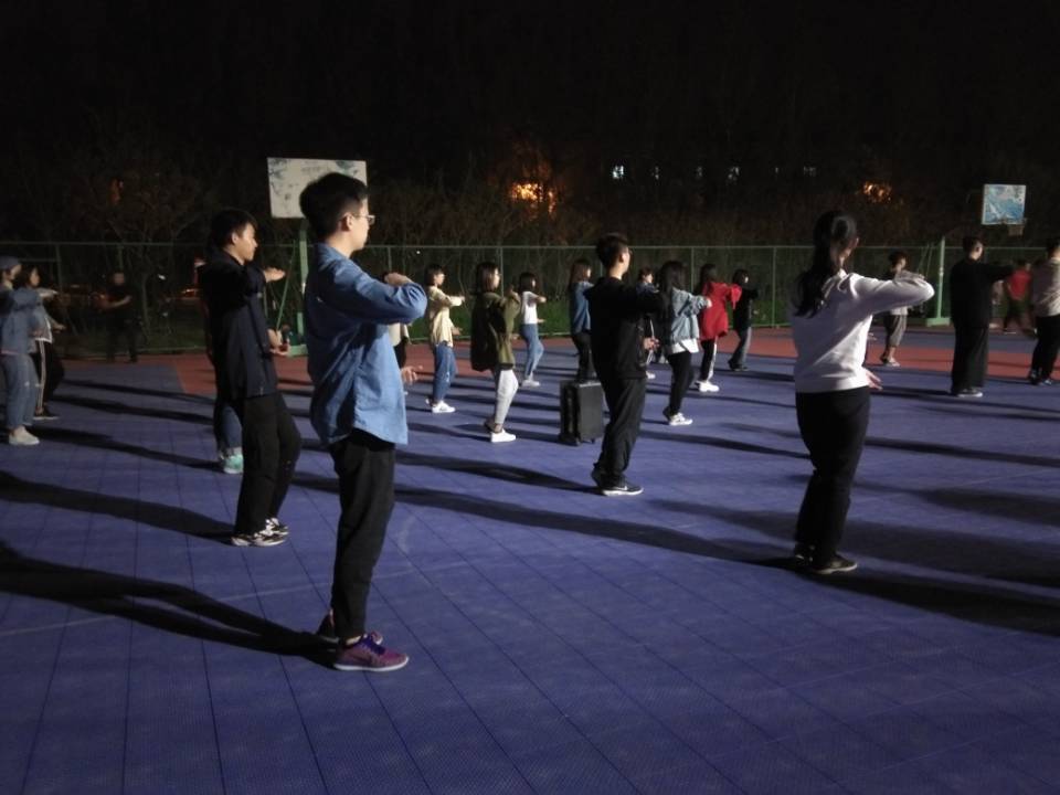 2019年5月11日晚上,太阳成集团tyc234cc于篮球场开展了运动会的太极拳团体项目的训练活动,活动的主要内容是对参加太极拳团体项目的同学配乐进行训练,并进行细节之处的纠正。2018级31位同学、2017级部分师兄师姐参加。