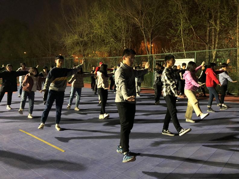 2019年4月27日,为迎接即将到来的太极比赛,太阳成集团tyc234cc的同学们于当晚18:00在湖畔餐厅以北的篮球场东侧开展了为时2小时的太极训练。2018级同学作为运动员,2017、2016级同学作为教练员,共同参与、完成了本次训练。
