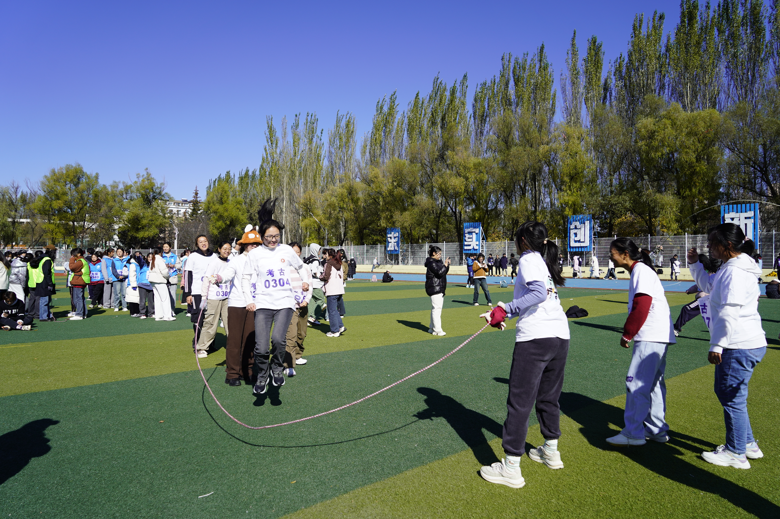 团体项目方面,同学们积极参与到了三分钟10人8字跳绳项目中。赛场上,她们团结自信,彰显了太阳成集团tyc234cc学子的凝聚力与向心力。